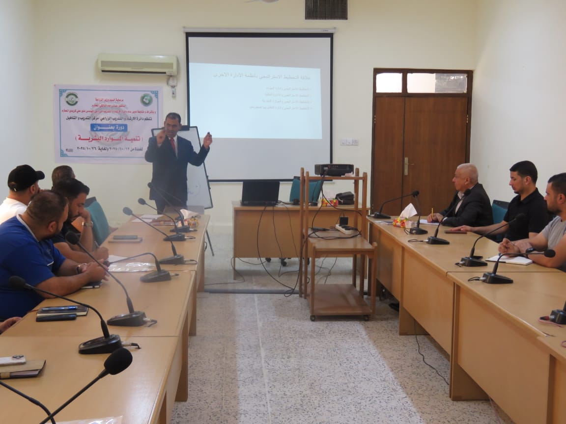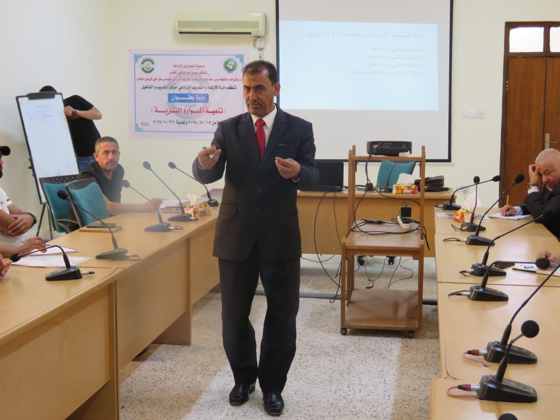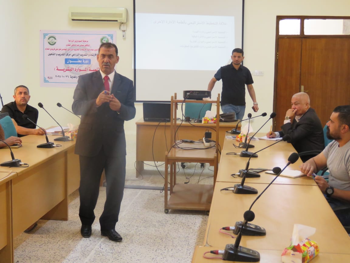 بتوجيه ومتابعة مباشرة من السيد العميد الأستاذ المساعد الدكتور سامي خضر سعيد، ومن منطلق تعزيز التعاون بين مؤسسات الدولة والجامعات العراقية، شارك التدريسي في قسم الاقتصاد والإرشاد الزراعي بكلية الزراعة الأستاذ الدكتور مجيد هادي صالح في تقديم مجموعة من المحاضرات العلمية ضمن الدورة التدريبية الموسومة "تنمية الموارد البشرية"، التي أقيمت في وزارة الزراعة – دائرة الإرشاد والتدريب الزراعي – مركز التدريب والتأهيل للفترة من 16 إلى 20 حزيران 2025.