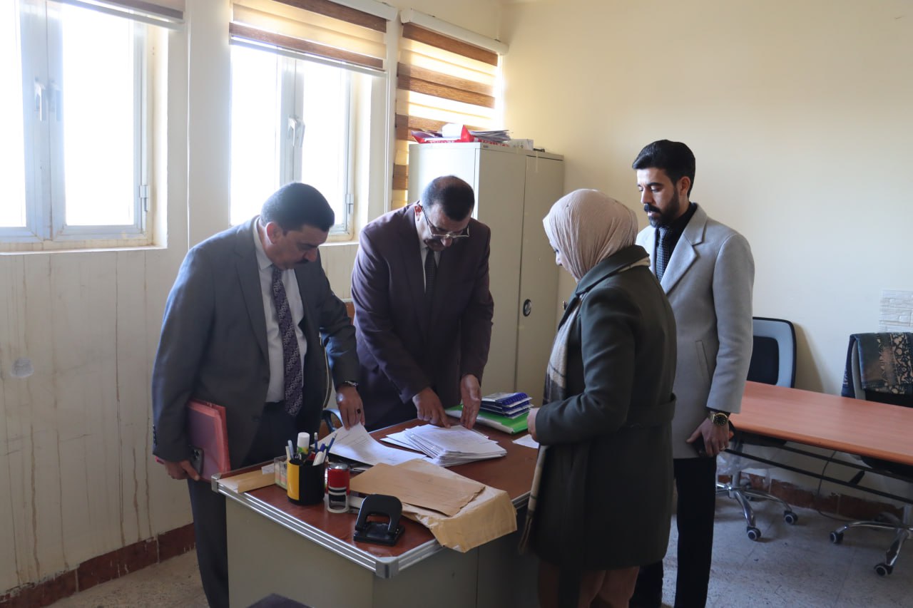 واطّلعت اللجنة خلال جولتها على القاعات الامتحانية، وآليات التنظيم، وتوفير المستلزمات اللوجستية والفنية، بما يسهم في تهيئة بيئة امتحانية مناسبة للطلبة. وقد رافق اللجنة في جولتها المعاون العلمي، الأستاذ المساعد وسام حمد حسين، الذي قدّم شرحاً مفصلاً عن الخطط المعتمدة لتنظيم الامتحانات ومعالجة أي معوقات محتملة.