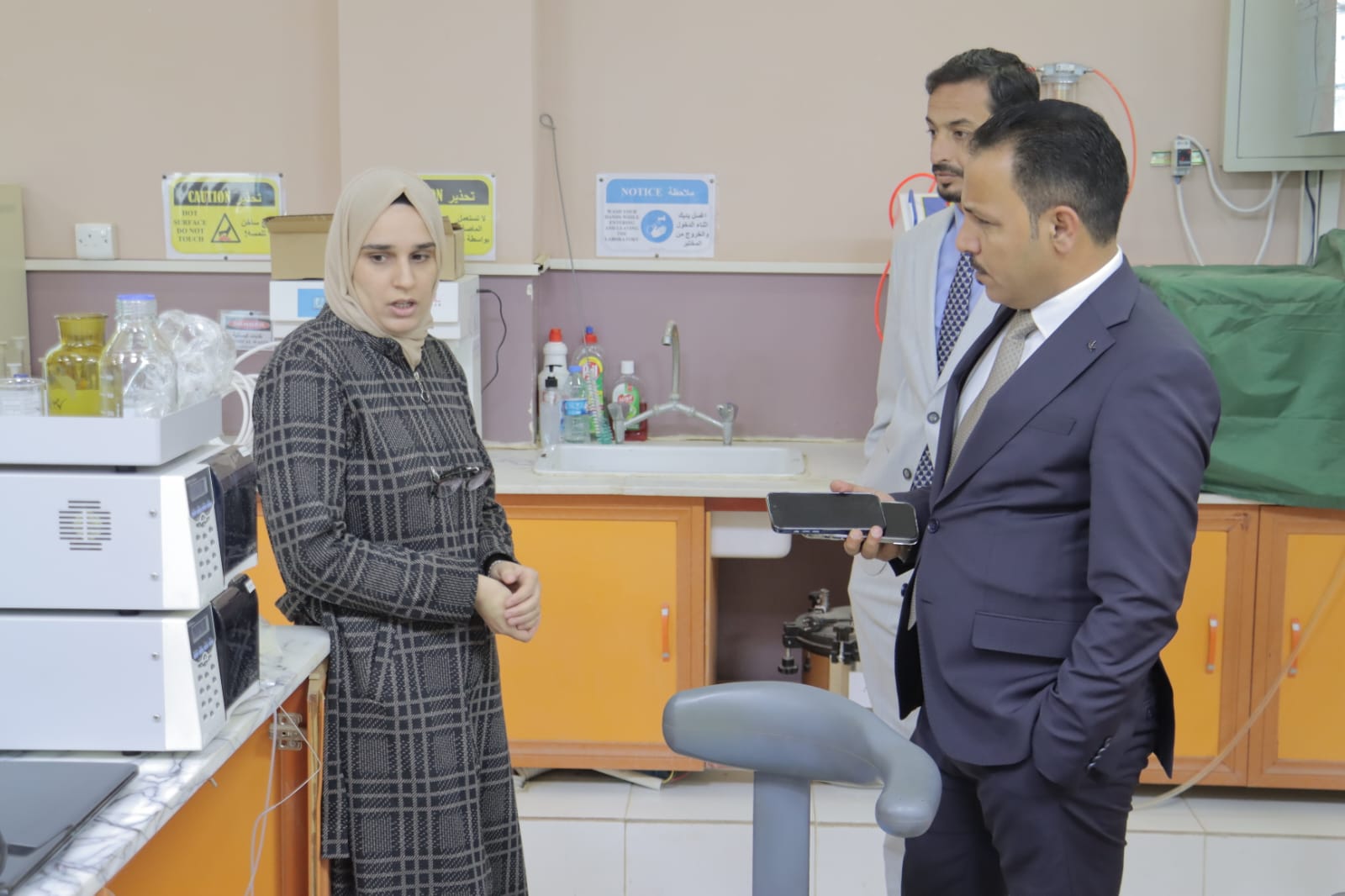 وفي المختبر المركزي.. اطلع العميد على الأجهزة والمعدات المتوفرة، وناقش مع المسؤولين سبل تطويره وتحديثه، من أجل توفير بيئة تعليمية وبحثية متميزة.