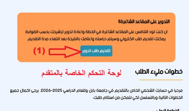 وبحسب التوقيتات المثبتة في اعمام دائرة البحث والتطوير الاخير تبدأ طلبات التدوير اعتباراً من اليوم الاحد ويكون ارسال طلب التدوير بالنسبة للمتقدم حصراً من خلال حسابه الالكتروني، وفقا للأتي: