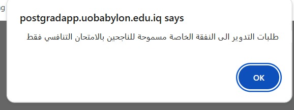 - يسقط حق المتقدم من المنافسة على مقاعد النفقة الخاصة الشاغرة في حال عدم ارسال طلب الكتروني ضمن التوقيتات المحددة من قبل الوزارة.