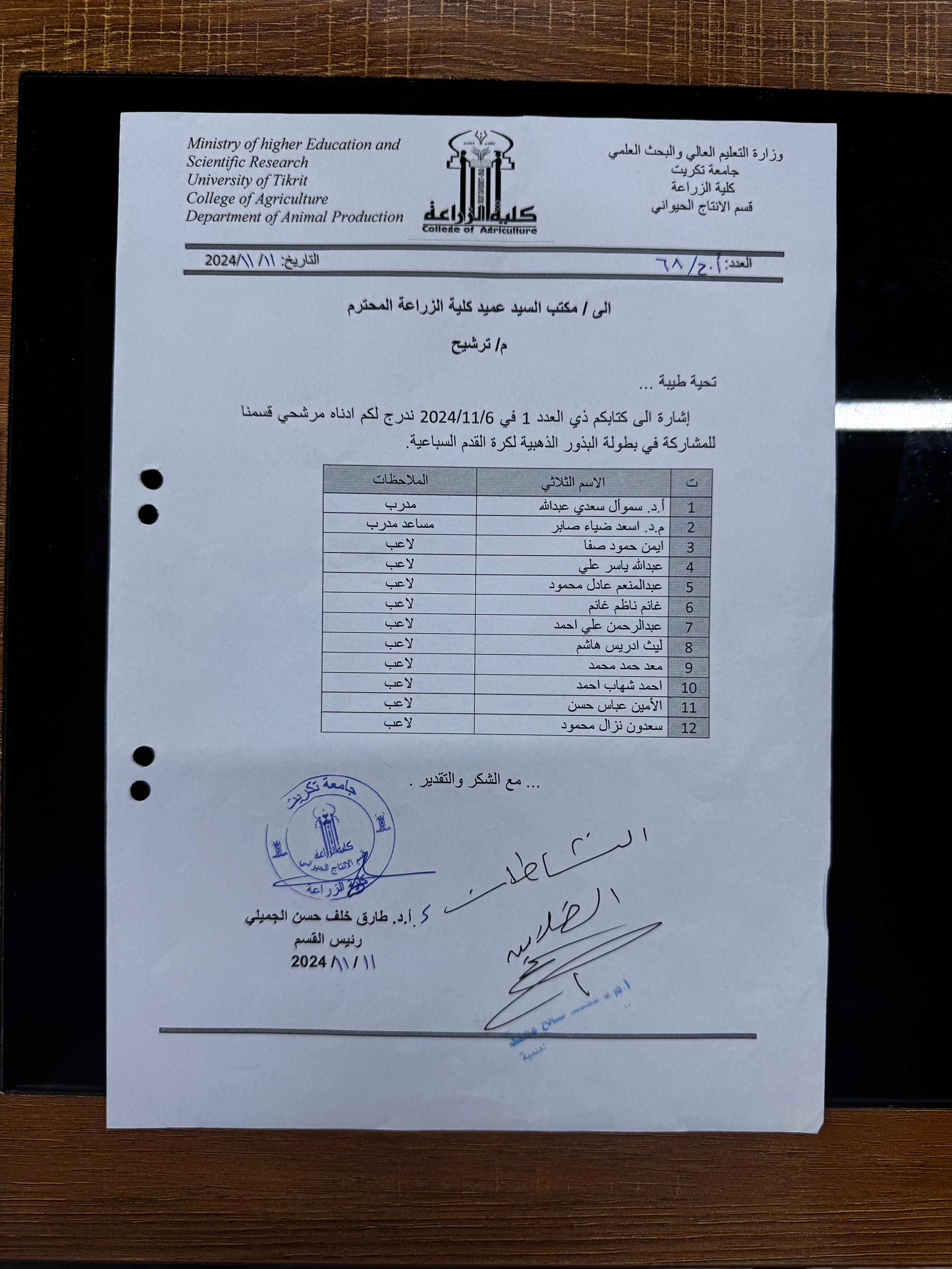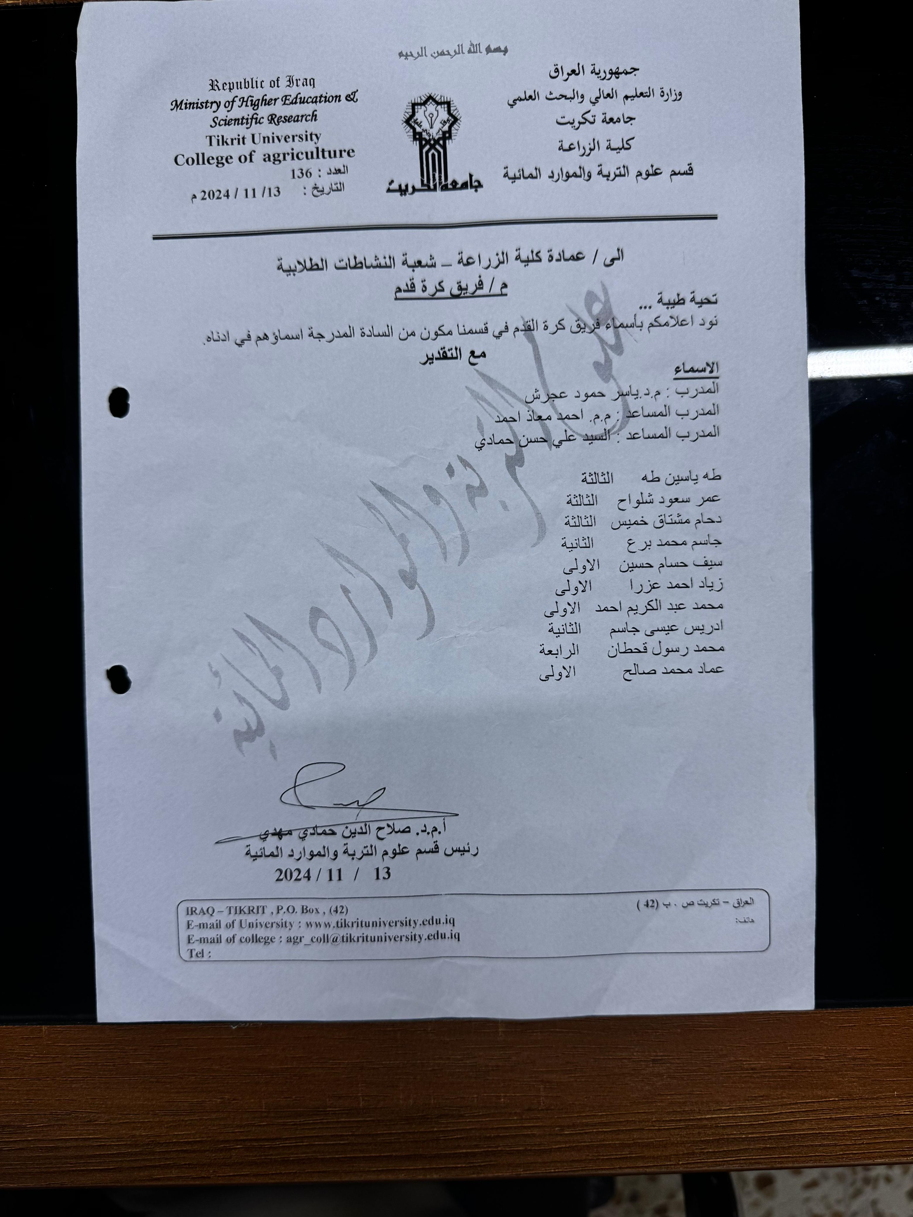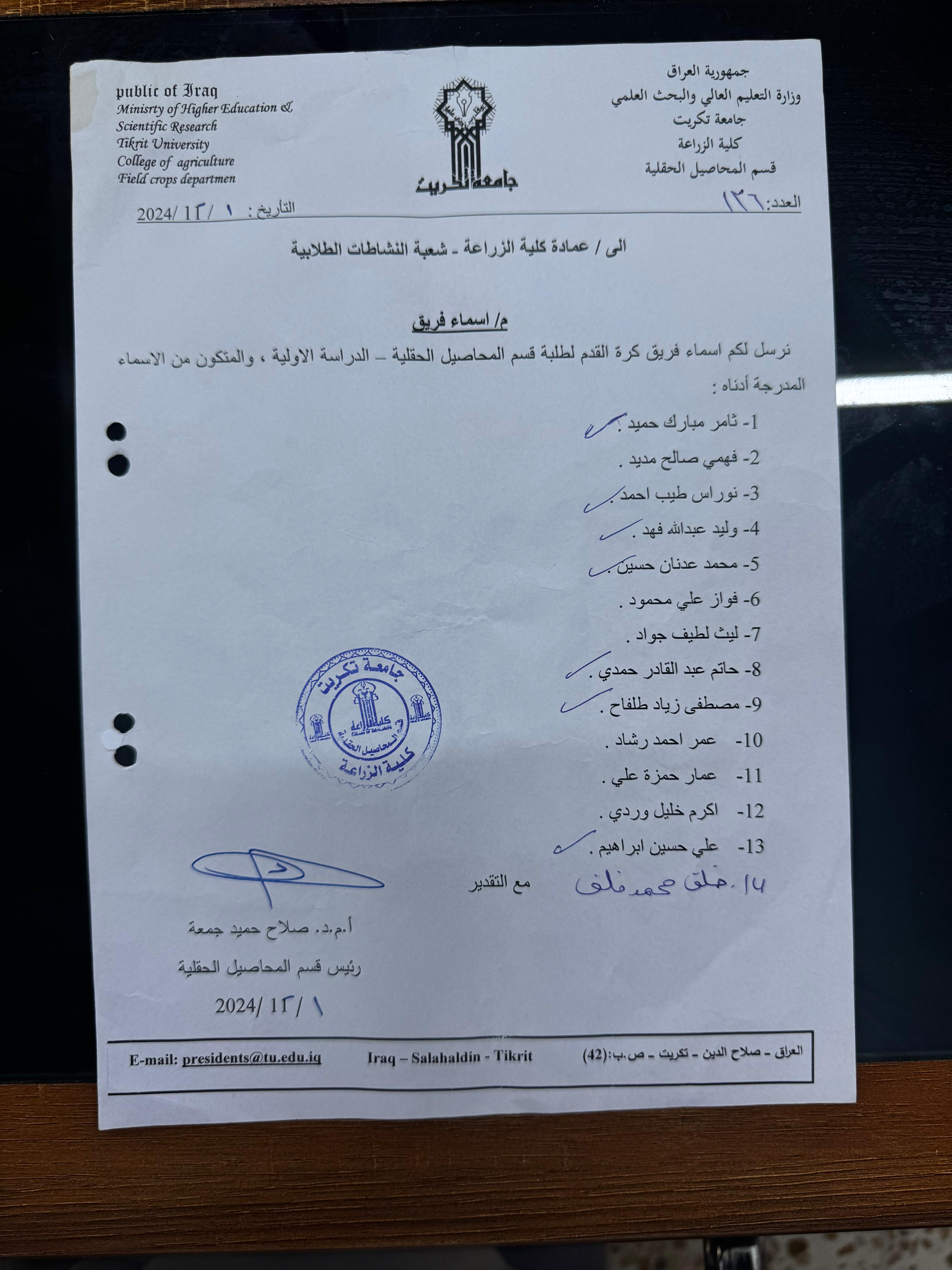 برعاية عمادة كلية الزراعة، نظمت الكلية بطولة "البذور الذهبية" بكرة القدم لطلبة جميع أقسامها العلمية. وتهدف هذه المبادرة إلى تعزيز روح التنافس الإيجابي والتعاون بين الطلبة، بالإضافة إلى تشجيعهم على ممارسة الأنشطة الرياضية التي تساهم في تنمية شخصياتهم وتجديد طاقتهم.