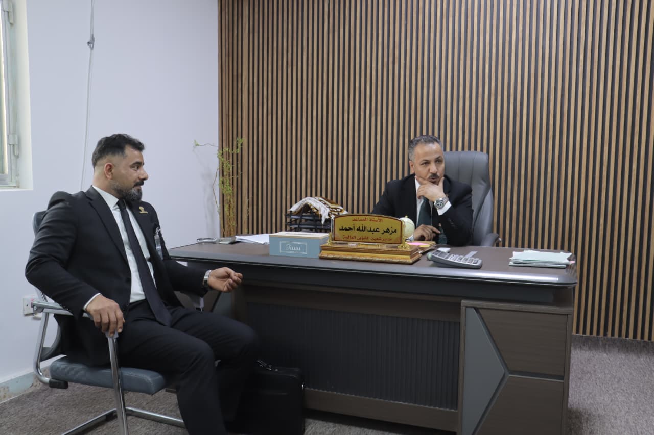 وكان في استقبال الفريق السيد عميد كلية الزراعة الأستاذ المساعد الدكتور سامي خضر سعيد، بمعية المعاونين الإداري والعلمي، ورؤساء الأقسام العلمية، إلى جانب عدد من التدريسيين، حيث قدموا شرحاً وافياً عن طبيعة العمل في الكلية، والبرامج التعليمية، وخطط التطوير المعتمدة للارتقاء بالمستوى العلمي والبحثي.