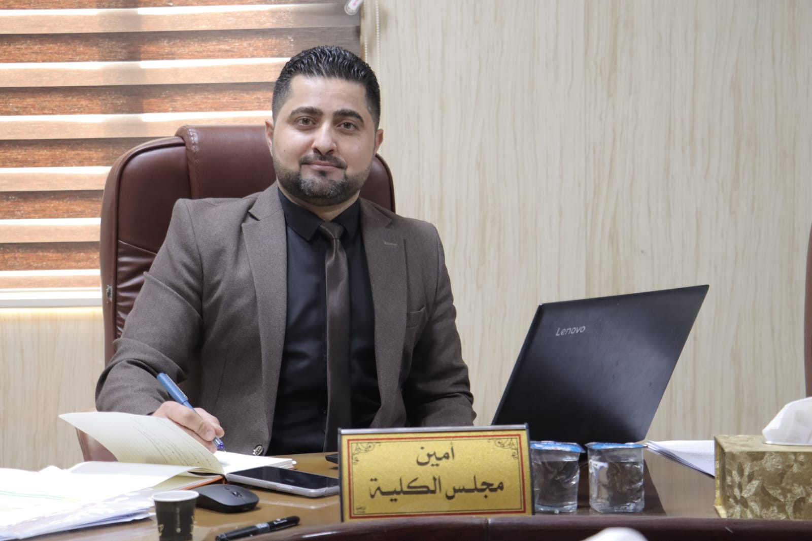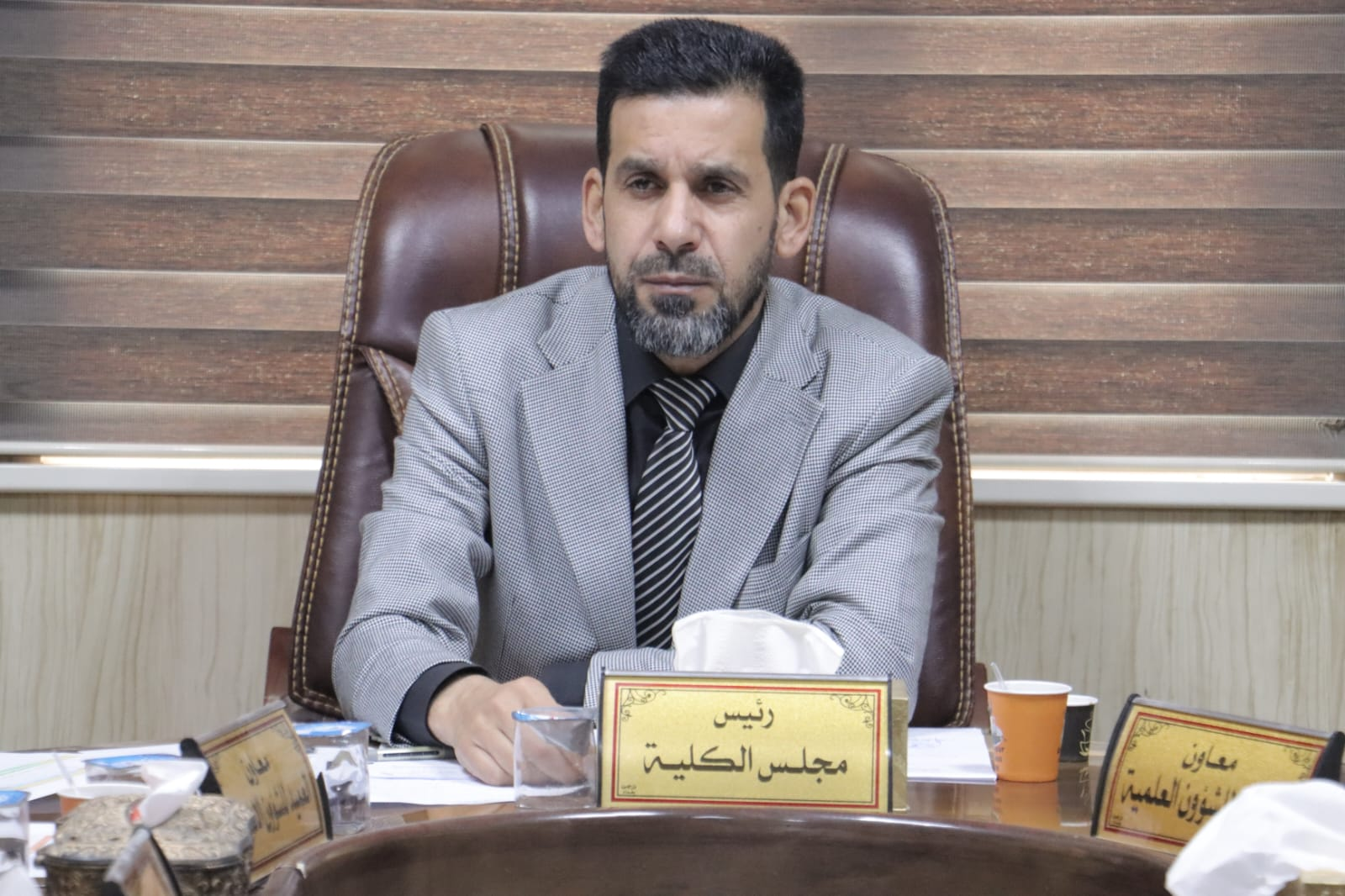 حيث ترأس اجتماع مجلس الكلية وناقش عدداً من الفقرات المدرجة على جدول الاعمال الخاصة بالمجلس وتابع سير العمل في الكلية وطرق الارتقاء به.. مؤكدا على ضرورة مواصلة العمل والسير وفق الرؤية والخطط المستقبلية التي وضعتها الجامعة وبما يخدم مخرجات الكلية واشاد بالجهود المبذولة من قبل عمادة الكلية والهيئة التدريسية في رفع المستوى العلمي والحفاظ على الرصانة العلمية للكلية والجامعة.