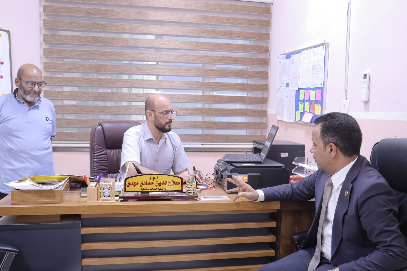 وأشاد بالجهود التي تبذلها كوادر شعبة الدراسات العليا في استقبال الطلبة وتسهيل إجراءاتهم، مؤكداً أن حسن التنظيم والدقة في العمل يعكسان صورة إيجابية عن الكلية، ويسهمان في توفير بيئة أكاديمية مهيأة للطلبة الجدد.