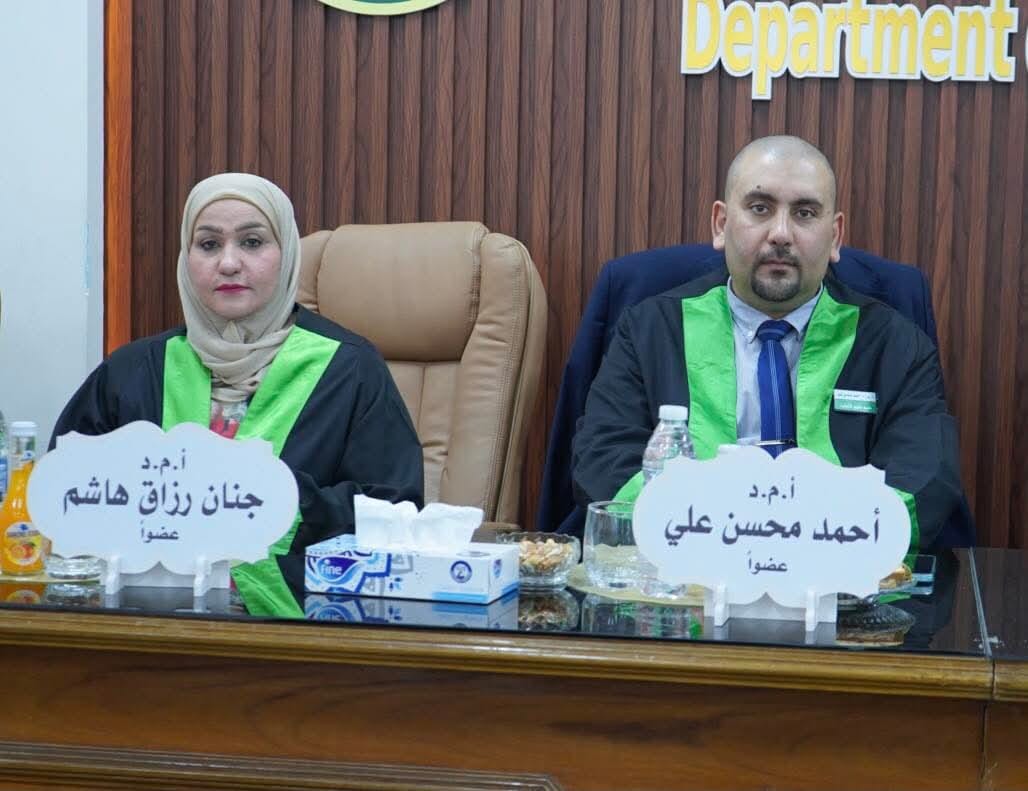 شارك التدريسي بقسم علوم الأغذية الاستاذ المساعد الدكتور أحمد محسن علي في مناقشة أطروحة دكتوراه في كلية علوم الهندسة الزراعية بجامعة بغداد بعنوان ( التحلل الحيوي لمبيد Acetamiprid ببكتريا معزولة محلياً ) للطالبة رؤى نايف عبدالله من قسم علوم الأغذية .