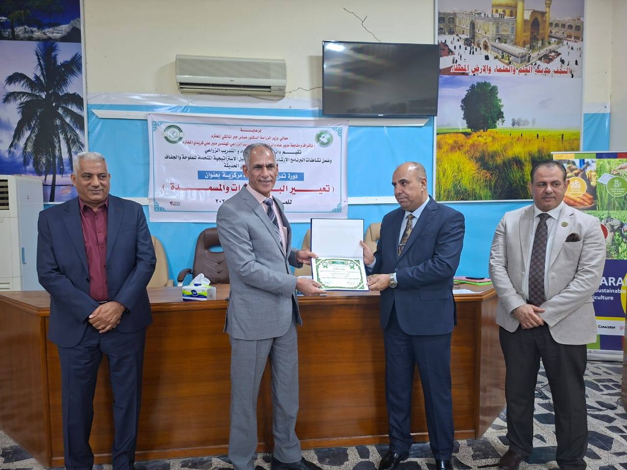 وأكد كريدي خلال الاجتماع أن تنفيذ مثل هذه الدورات التدريبية المتخصصة يُعدّ ركيزة أساسية لرفع قدرات ومهارات منتسبي الدائرة، وتطوير أدائهم الفني بما ينعكس مباشرة على جودة الخدمات المقدَّمة للمزارعين. وأشار إلى أن مخرجات هذه الدورة تُسهم بشكل فعّال في تعزيز قدرة الكوادر على مواجهة التغيّرات البيئية والتقلبات المناخية وشحّة المياه وارتفاع ملوحة التربة، وهي عوامل أثّرت سلباً في خصوبة الأراضي الزراعية في العراق. وشدّد على ضرورة توحيد الجهود وتبنّي التقانات الحديثة لتحقيق التنمية الزراعية المستدامة، ودعم المزارعين في تحسين كفاءة العمليات الحقلية والارتقاء بالإنتاج الزراعي رغم التحديات المناخية والبيئية القائمة.