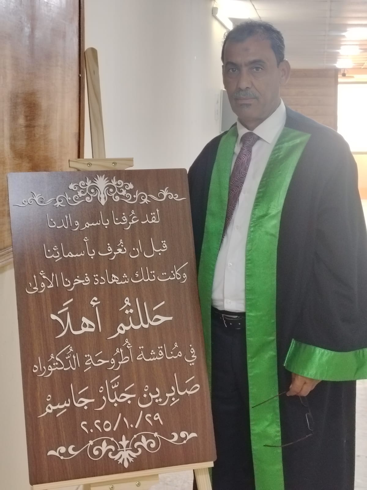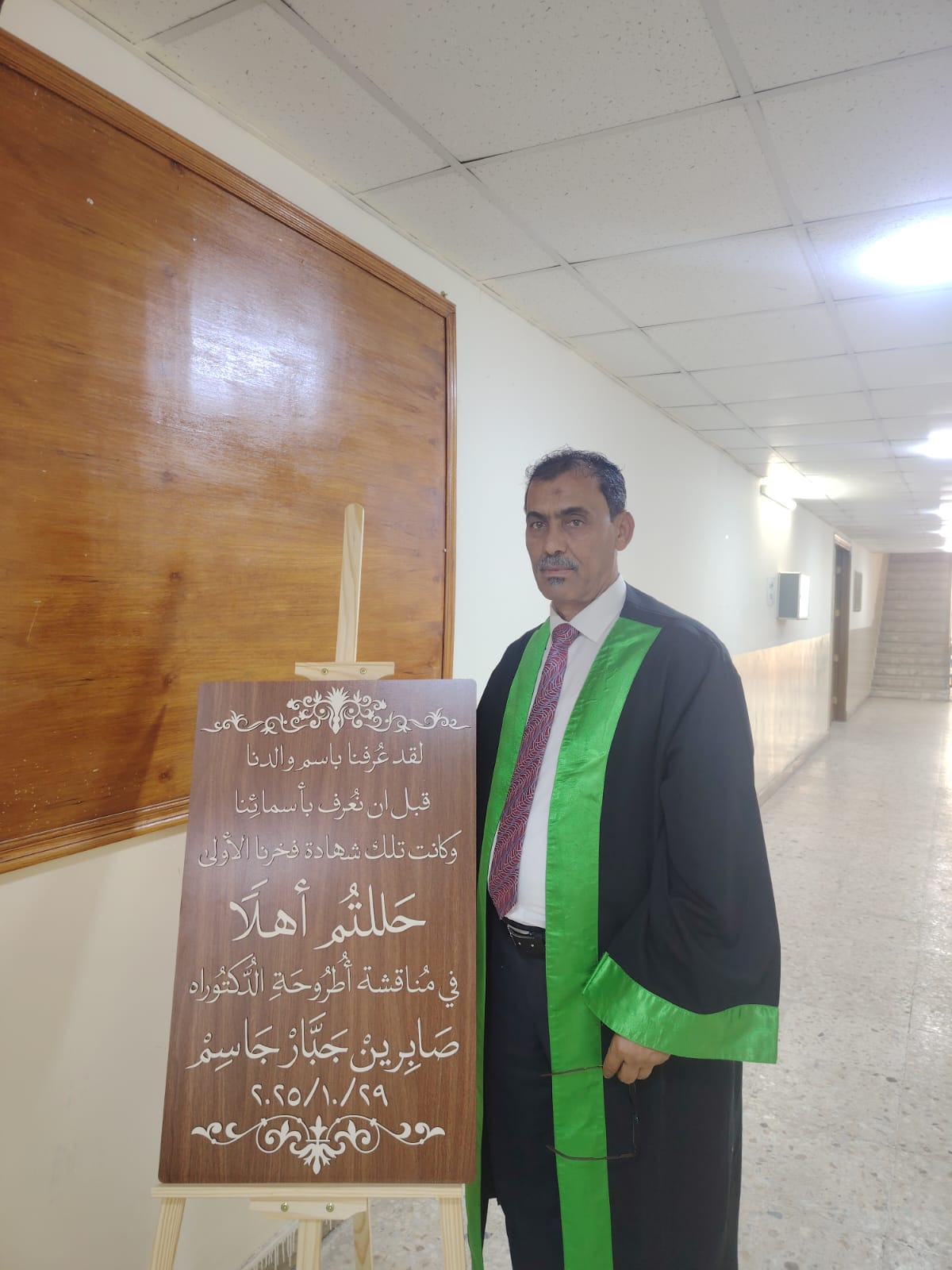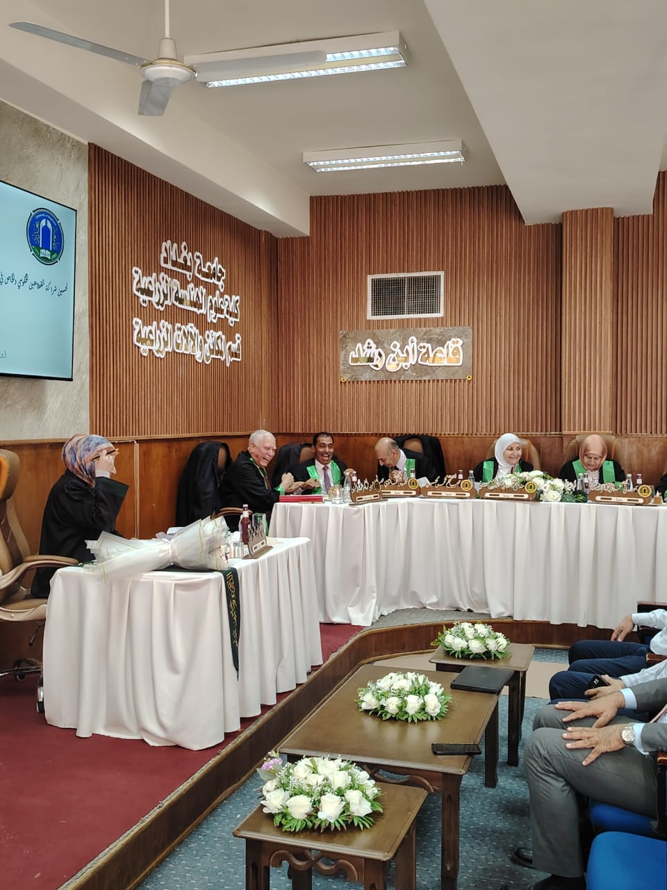 في إطار التعاون الأكاديمي بين الجامعات العراقية.. شارك الاستاذ الدكتور مجيد هادي صالح بعضوية لجنة مناقشة لرسالة الدكتوراه المقدمة من الطالبة صابرين بجار جاسم محمد، من قسم الإرشاد الزراعي ونقل التقنيات في كلية الهندسة الزراعة بجامعة بغداد والت كانت بعنوان