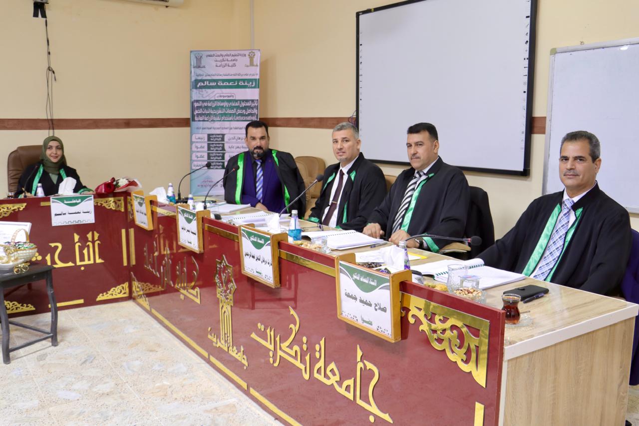 نوقشت في قسم البستنة وهندسة الحدائق بكلية الزراعة - جامعة تكريت رسالة ماجستر للطالبة زينة نعمة سالم بعنوان (تأثير المحلول المغذي واعرف أركز اوساط الزراعة في النمو والحاصل وبعض الصفات التشريحية لنبات الخس باستخدام تقنية الزراعة المائية)