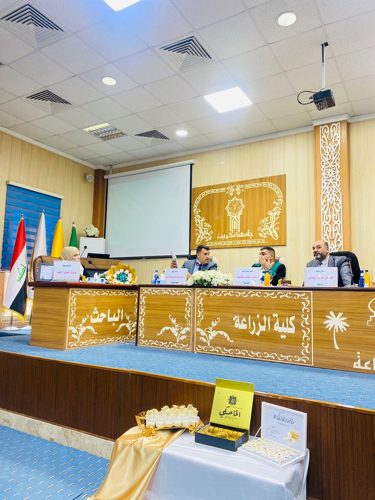 نوقشت في كلية الزراعة قسم البستنة وهندسة الحدائق رسالة ماجستير للباحثة (مروج حسن أحمد عبطان) بعنوان (تأثير الرش بالاحماض الامينية في نمو وحاصل والصفات الخزنية لصنفين من الخس .Lactucasativa L) وحصلت على تقدير امتياز