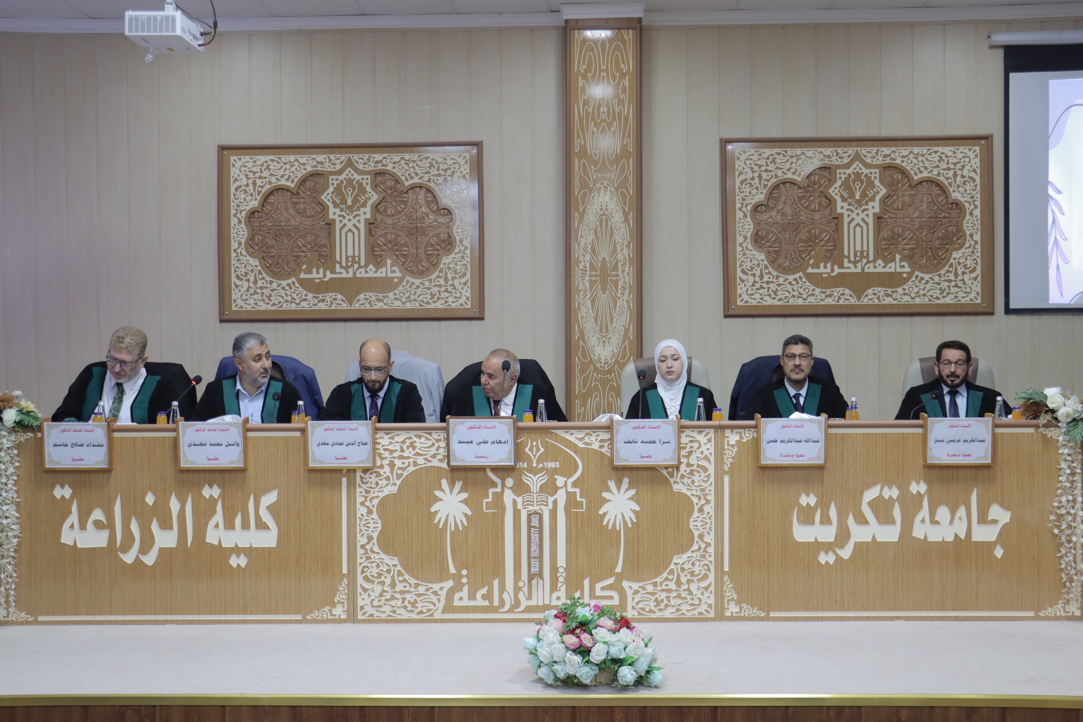 نوقشت في قسم التربة والموارد المائية بكلية الزراعة جامعة تكريت أطروحة دكتوراه للباحث عبدالله أركان خالد بعنوان (تقييم الكومبوست المحضر من بعض المخلفات الزراعية والأدغال وسطًا لإنتاج الفطر الغذائي Agaricus bisporus وشتلات الخضر).. وقد ترأس اللجنة الأستاذ الدكتور أدهام علي عبد عميد كلية الزراعة جامعة الأنبار والذي قامت عمادة كلية الزراعة متمثلة بالسيد العميد الاستاذ المساعد الدكتور سامي خضر سعيد بتكريمه بكتاب شكر وتقدير من رئاسة الجامعة على مجهوده العلمي الكبير وتحمله عناء السفر لاتمام المناقشة.