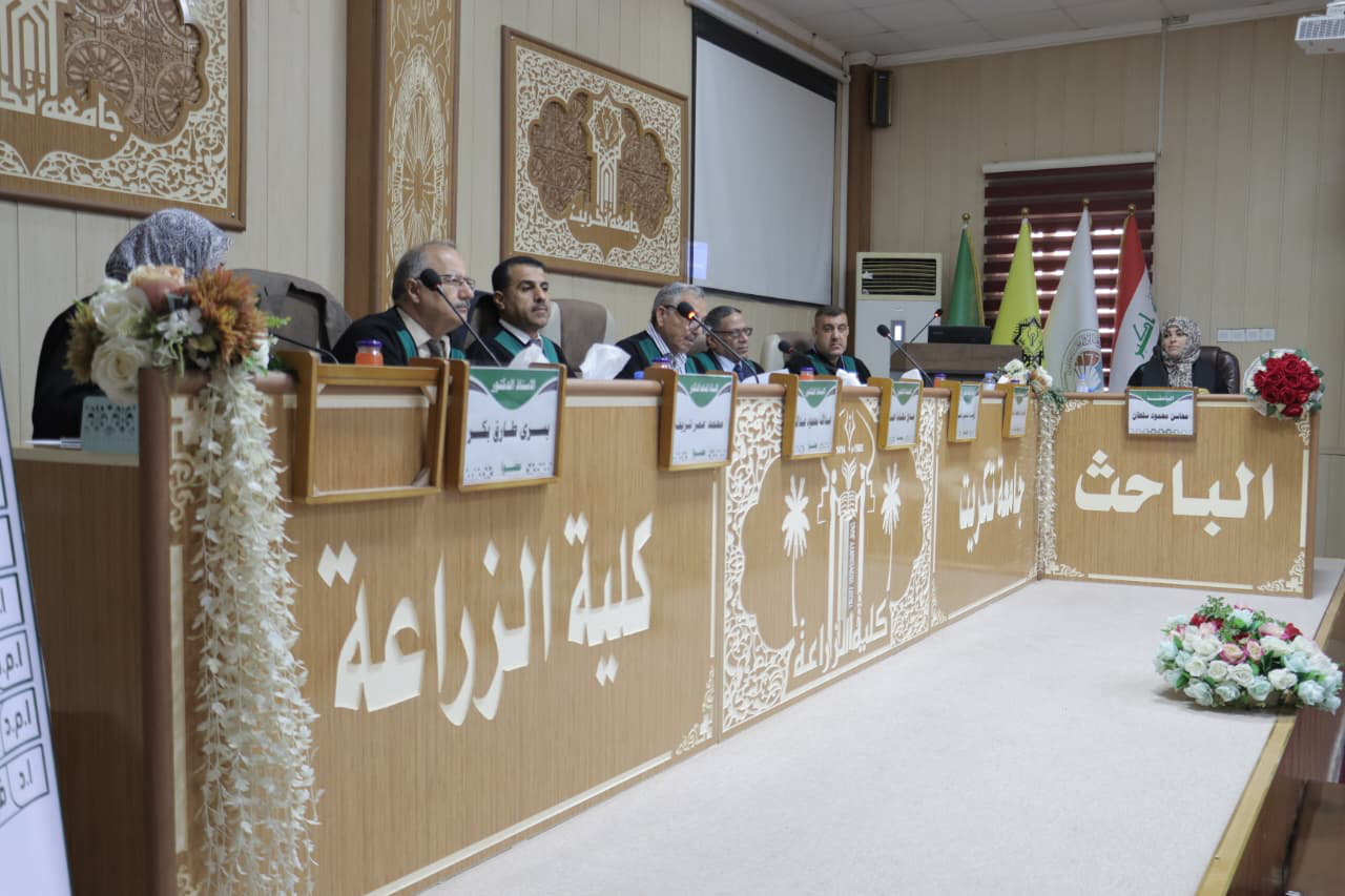 بحضور السيد العميد الاستاذ المساعد الدكتور سامي خضر سعيد.. نوقشت في قسم الاقتصاد والارشاد الزراعي بكلية الزراعة - جامعة تكريت أطروحة دكتوراه للباحثة محاسن محمود سلطان بعنوان (التسويق الزراعي لمحصول الزيتون وأثر تحليل سلسلة القيمة في تحسين كفاءة التسويق الزراعي للمحصول للموسم الإنتاجي 2023 – محافظة نينوى أنموذجاً تطبيقياً)