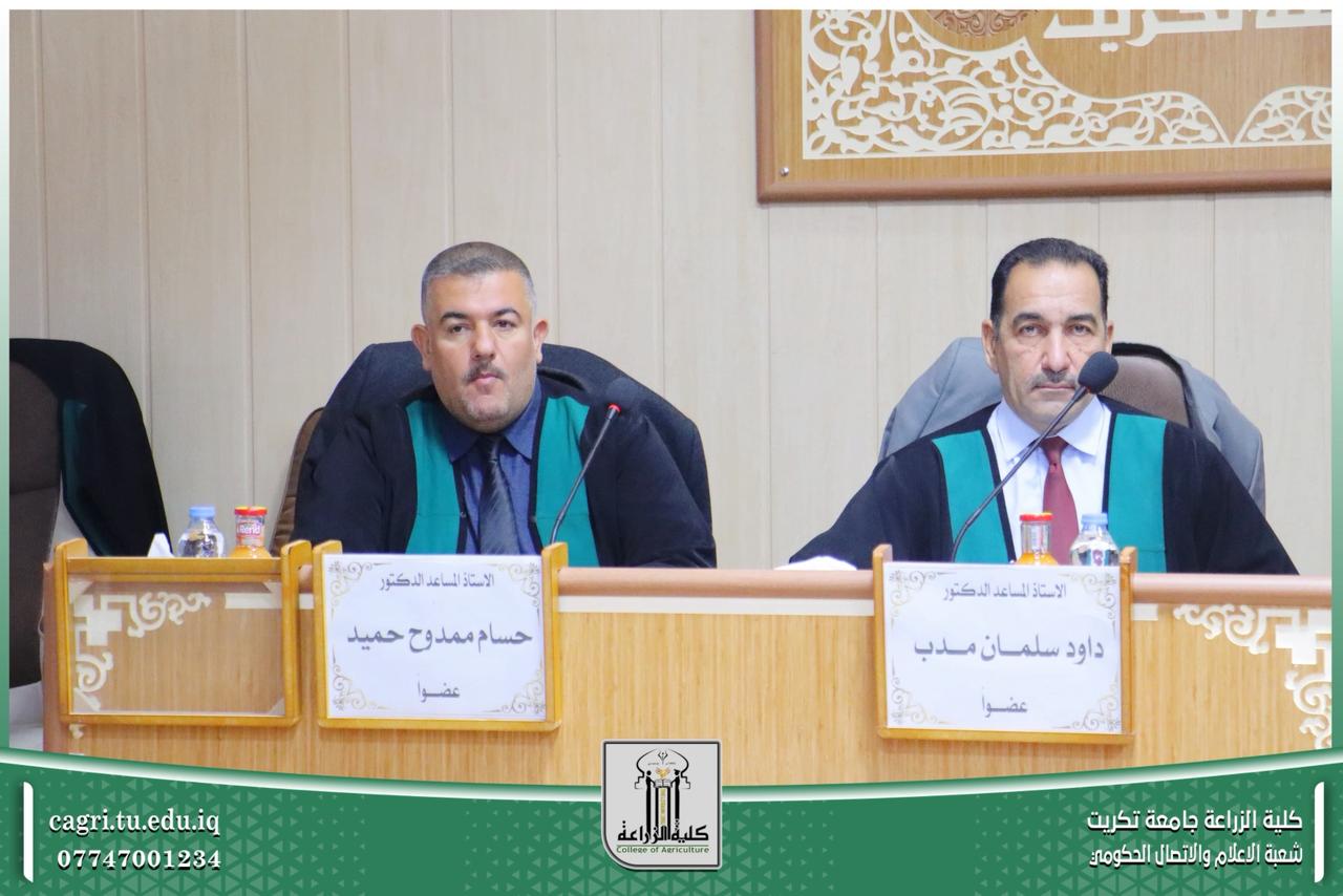نوقشت في قسم المحاصيل الحقلية بكلية الزراعة – جامعة تكريت، أطروحة دكتوراه للطالبة ساهرة رحيم شريف، والموسومة «غربلة تراكيب وراثية من حنطة الخبز جزيئياً ووراثياً ومظهرياً في مواعيد زراعية مختلفة».