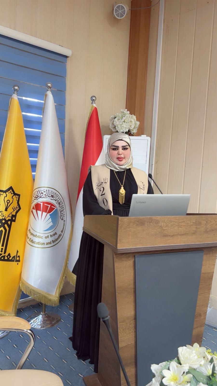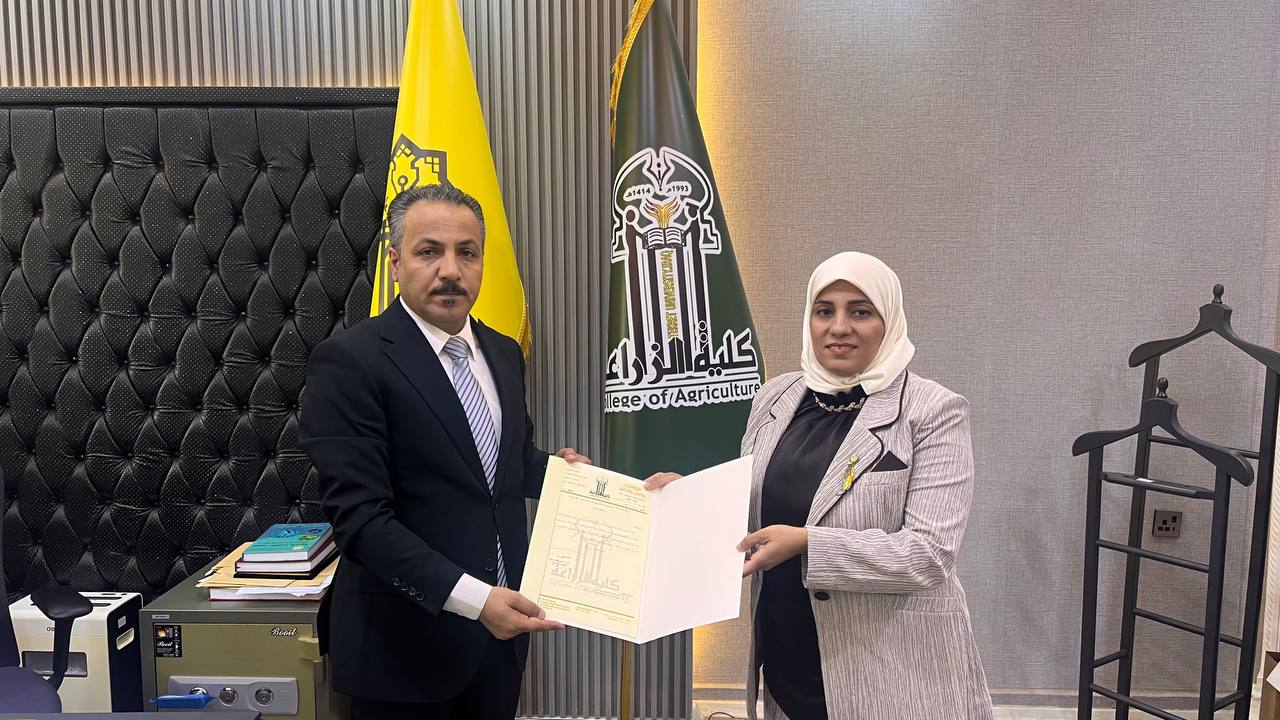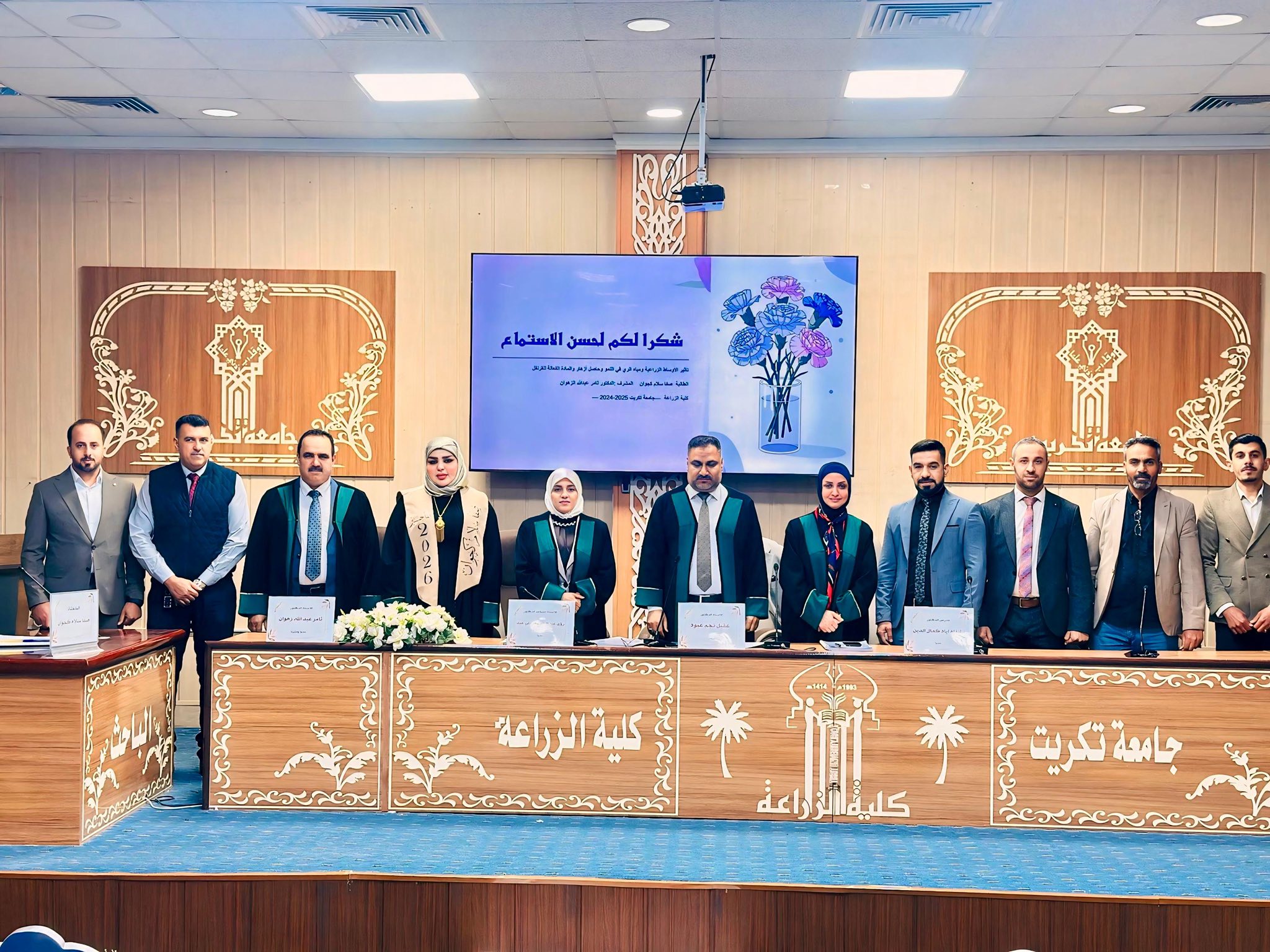 نوقشت في قسم البستنة وهندسة الحدائق بكلية الزراعة - جامعة تكريت رسالة ماجستير للطالبة صفا سلام كجوان نصيف بعنوان (تأثير الأوساط الزراعية ومياه الري في نمو وحاصل أزهار والمادة الفعالة للقرنفل)