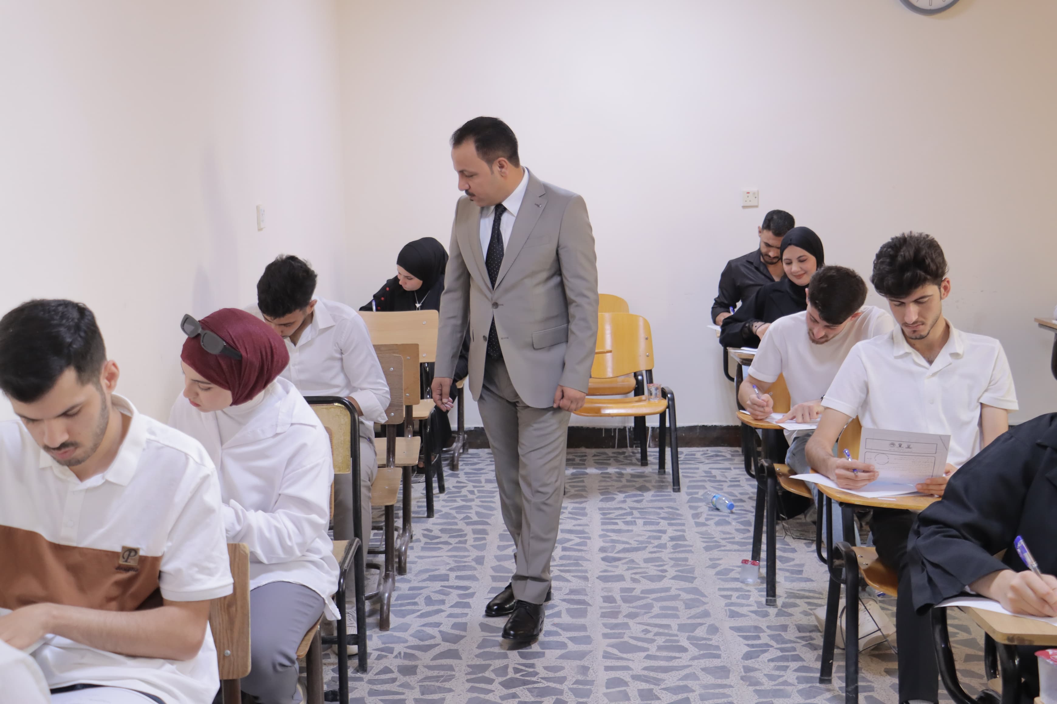 وأكد السيد العميد أهمية توفير كافة المستلزمات الضرورية لضمان سير الامتحانات بانسيابية وراحة للطلبة، مشيدًا بجهود الكادر التدريسي والإداري في تهيئة القاعات وتوفير البيئة المناسبة للامتحانات.