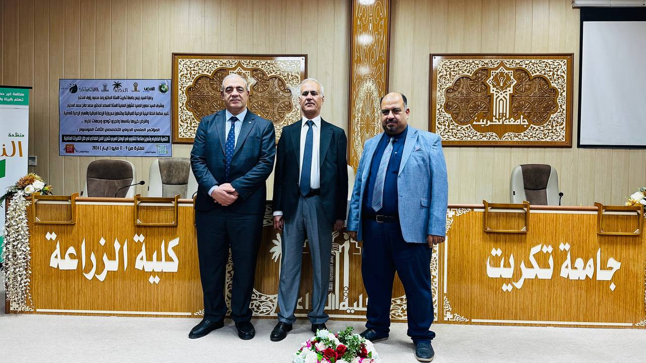 اختتمت فعاليات المؤتمر العلمي الدولي التخصصي الثالث للتنمية الخضراء وتعزيز صناعة التقاوى بالوطن العربي والمنعقد برعاية جامعة تكريت كلية الزراعة والمتمثلة برئيس جامعة تكريت أ.د. وعد محمود رؤوف والمعاون العلمي لكلية الزراعة أ.م.د.محمد صالح محمد. ومنظمة النخلة البيئية والزراعية وبالتعاون مع وزارة الزراعة العراقية ومؤسسة الاهرام الزراعية و شركة الأرض خيرها بناسها وشركة اجري تودي المصرية