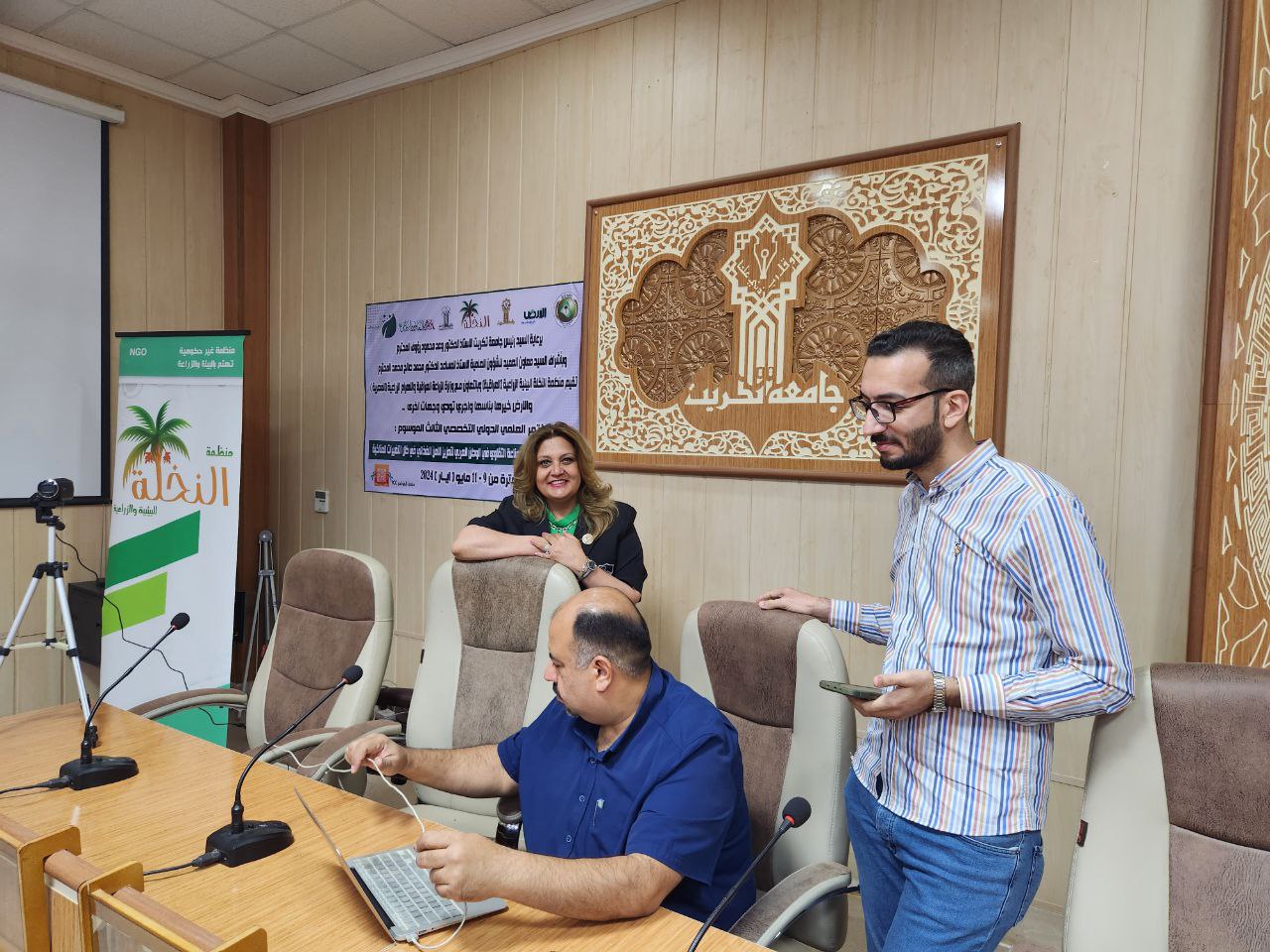حيث ترأس المؤتمر أ.د.شهرزاد محمد الشديدي رئيس منظمة النخلة البيئية والزراعية. وأ.د.فارس عبد علي العبيدي نائب رئيس المنظمة.