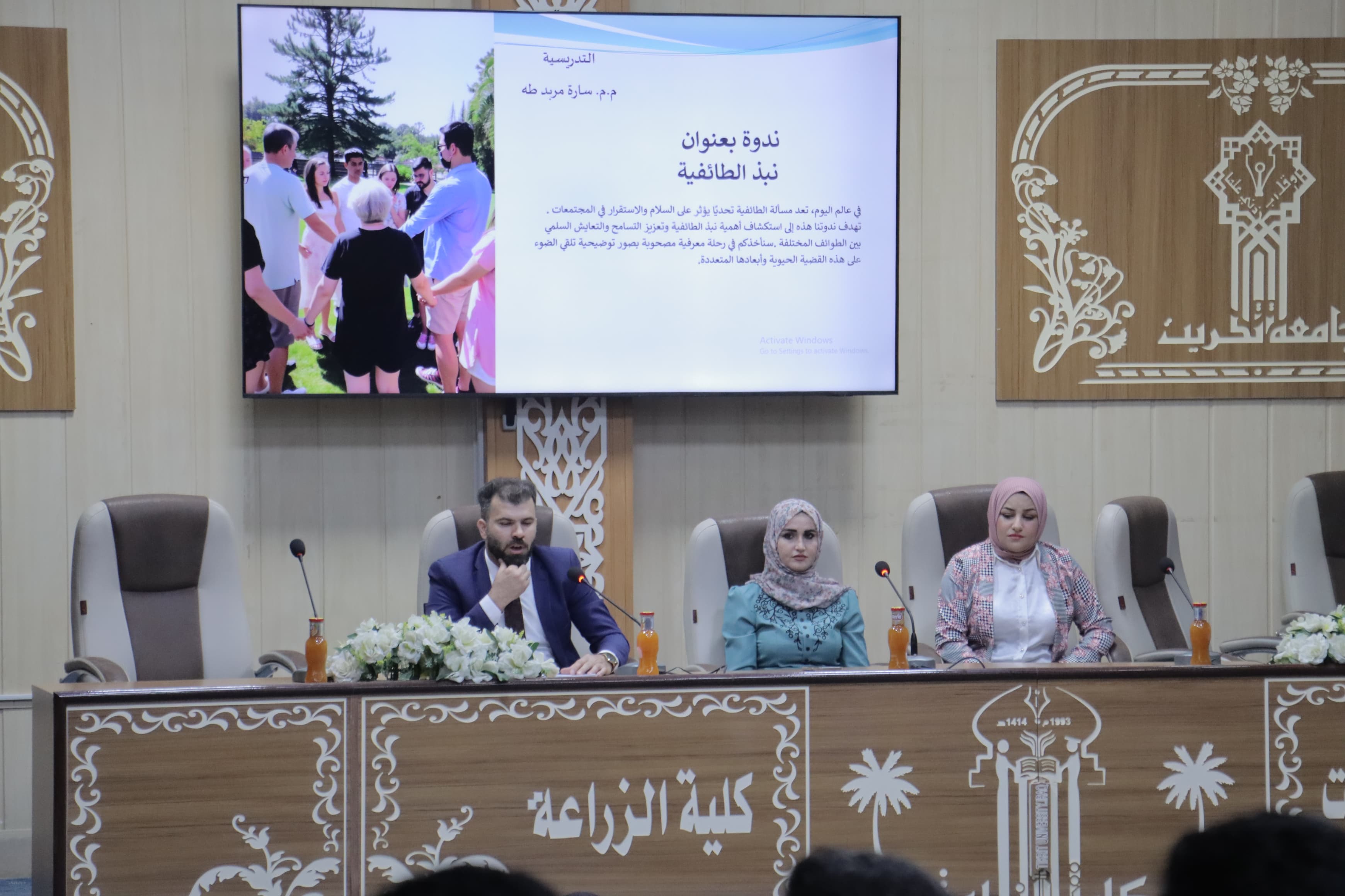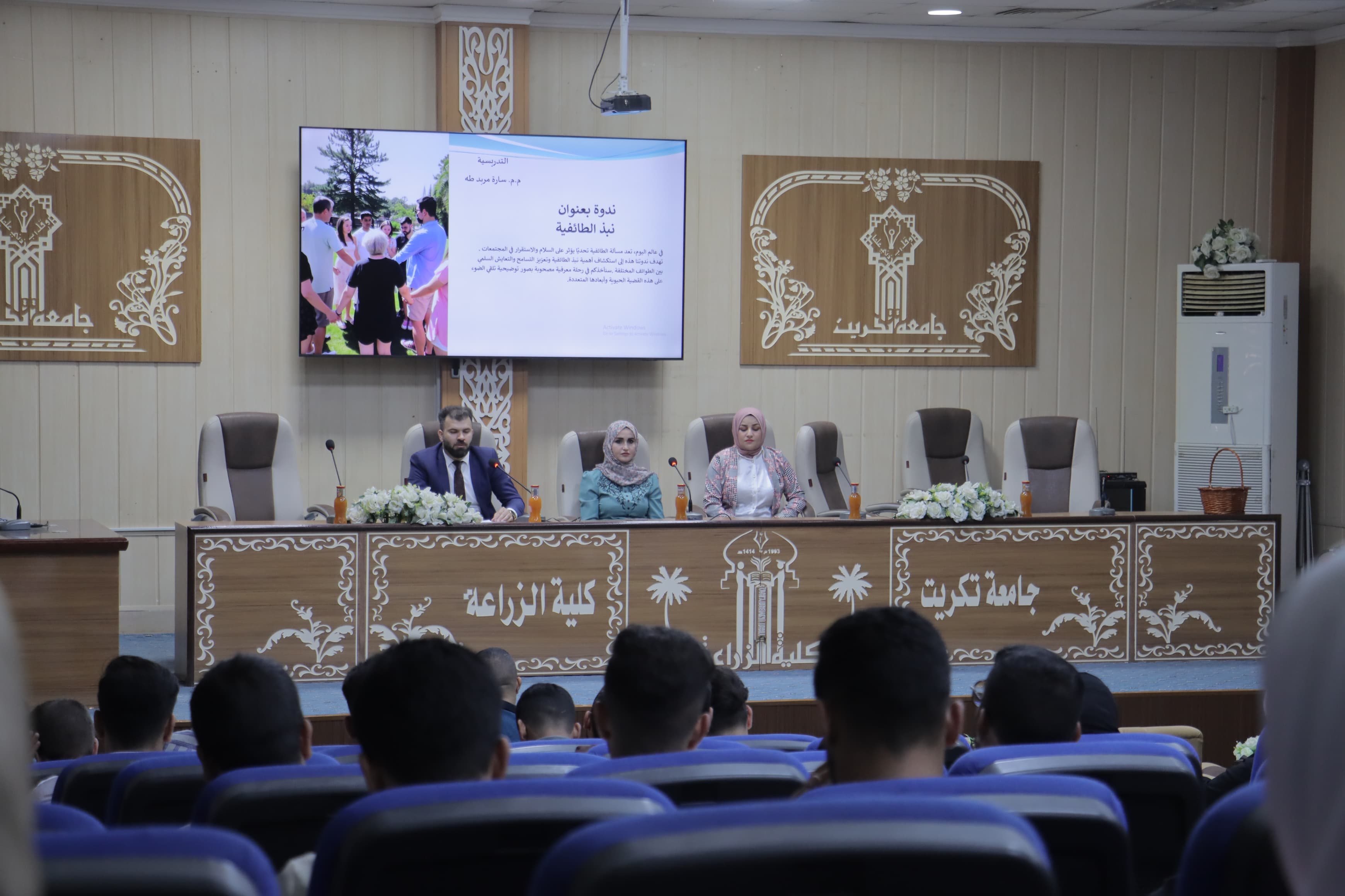 برعاية السيد رئيس جامعة تكريت الأستاذ الدكتور وعد محمود رؤوف وبإشراف كل من السيد عميد كلية الزراعة الأستاذ المساعد الدكتور سامي خضر سعيد والسيد مدير مركز التعليم المستمر الأستاذ المساعد الدكتور سياف عبد حسين.. أقامت وحدة الإرشاد النفسي والتوجيه التربوي بكلية الزراعة وبالتعاون مع مركز التعليم المستمر ندوة بعنوان: