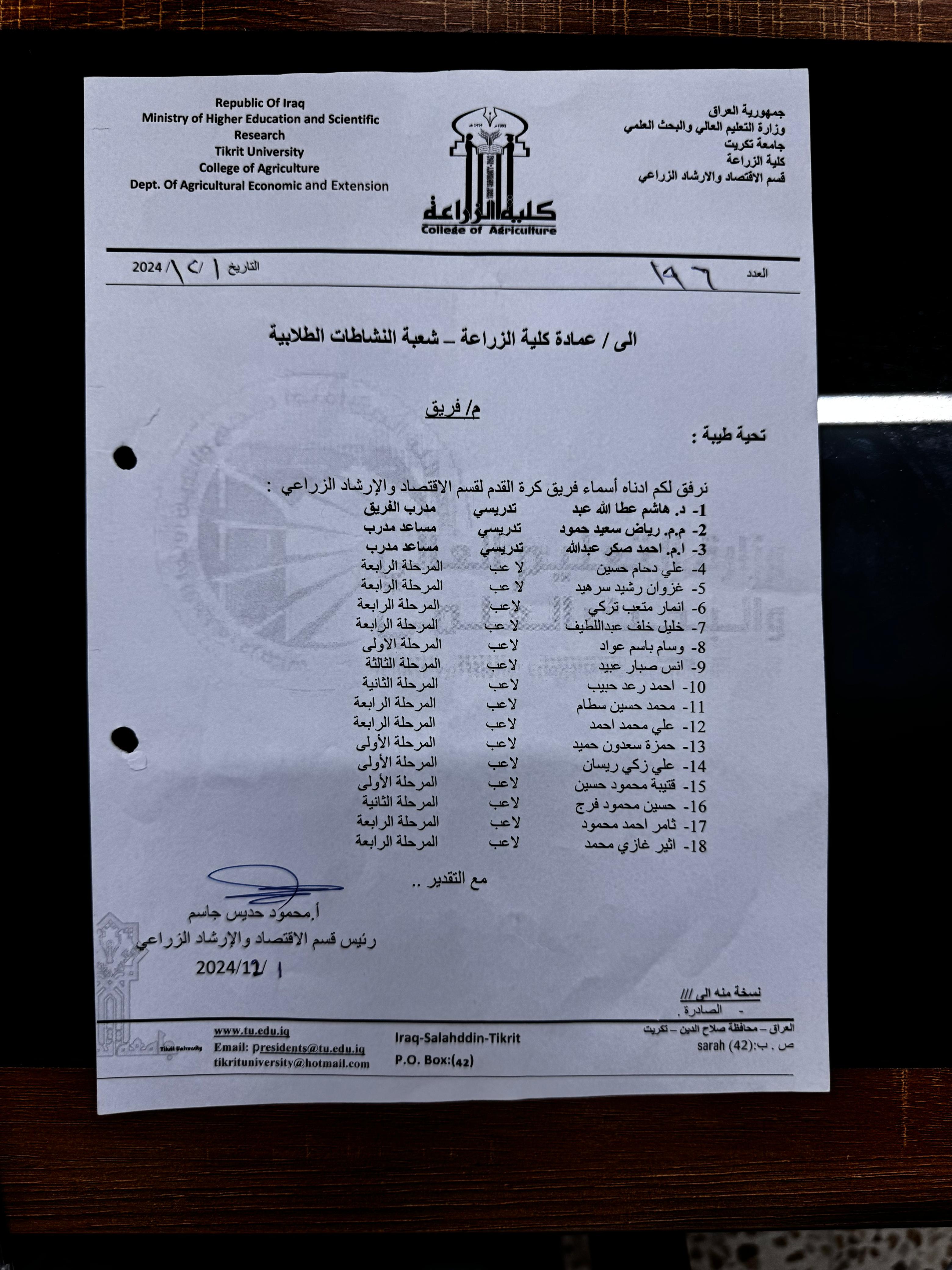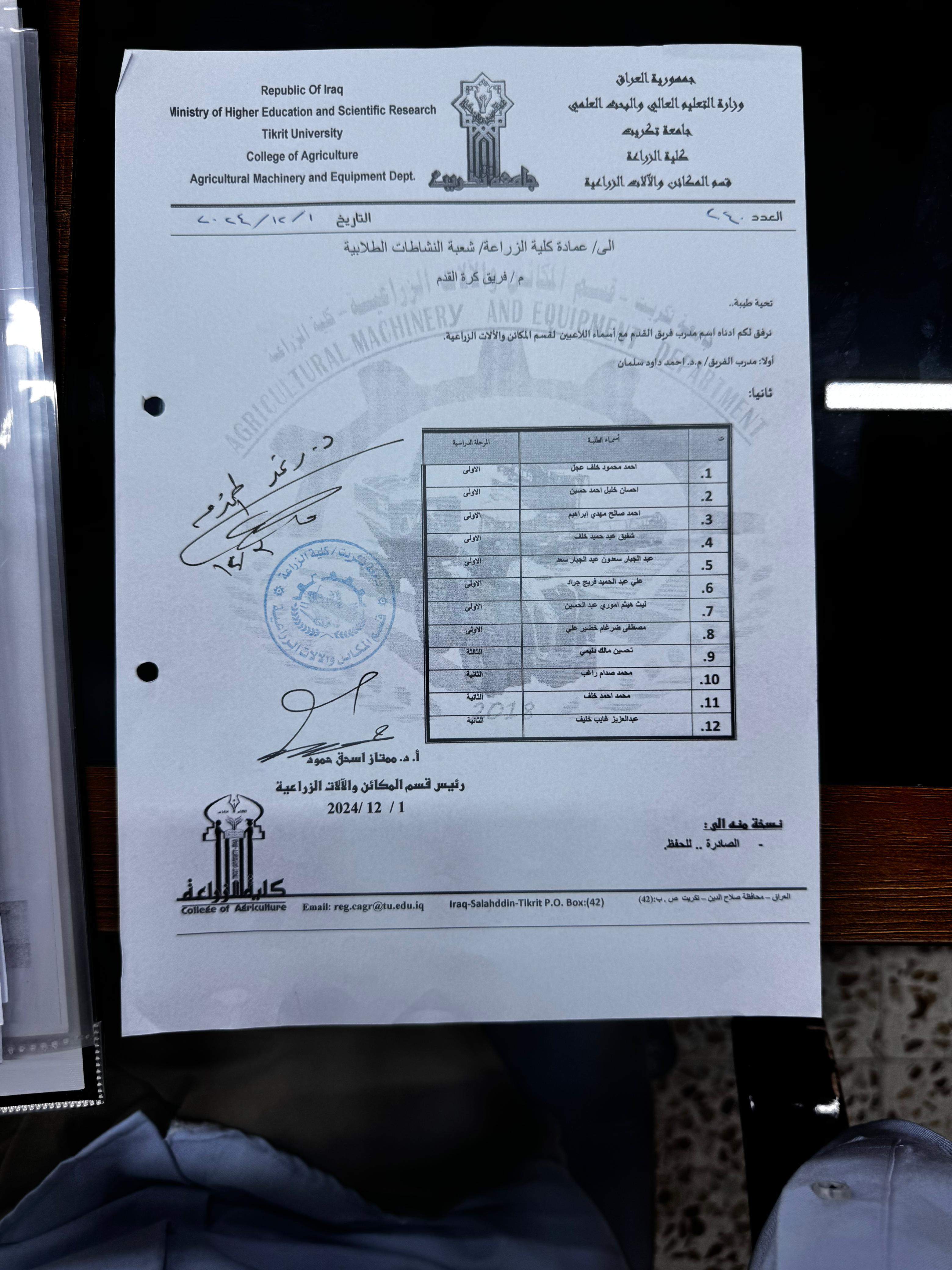 برعاية عمادة كلية الزراعة، نظمت الكلية بطولة "البذور الذهبية" بكرة القدم لطلبة جميع أقسامها العلمية. وتهدف هذه المبادرة إلى تعزيز روح التنافس الإيجابي والتعاون بين الطلبة، بالإضافة إلى تشجيعهم على ممارسة الأنشطة الرياضية التي تساهم في تنمية شخصياتهم وتجديد طاقتهم.