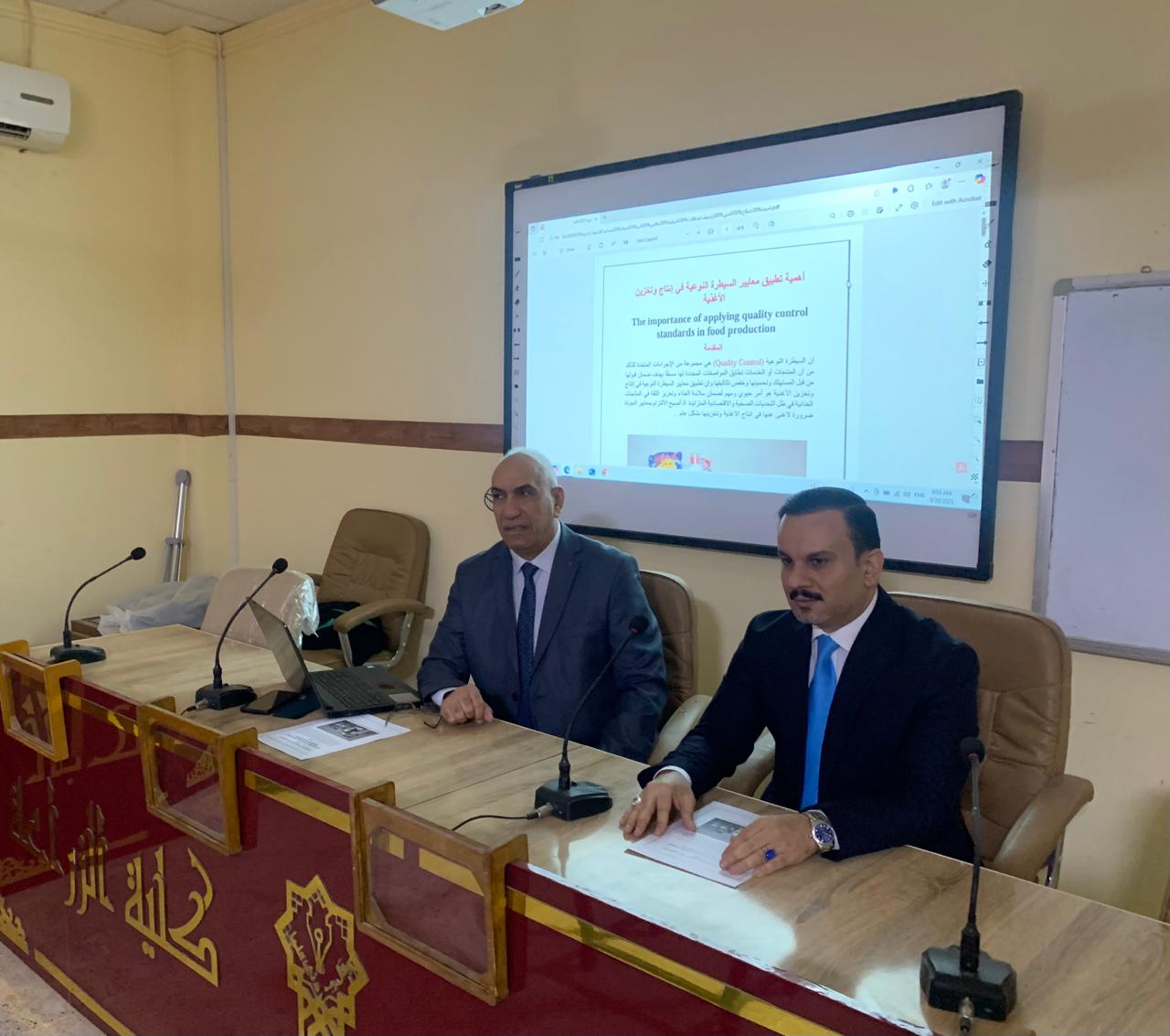 برعاية رئيس جامعة تكريت، الأستاذ الدكتور وعد محمود رؤوف، وبإشراف عميد كلية الزراعة، الأستاذ المساعد الدكتور سامي خضر سعيد، نظم قسم علوم الأغذية في كلية الزراعة ندوة علمية تخصصية بعنوان: «أهمية تطبيق معايير السيطرة النوعية في إنتاج وتخزين الأغذية».