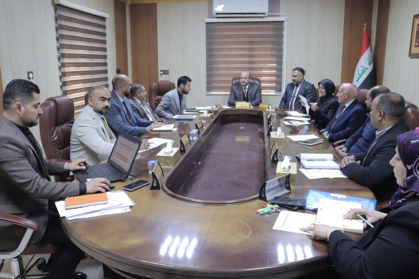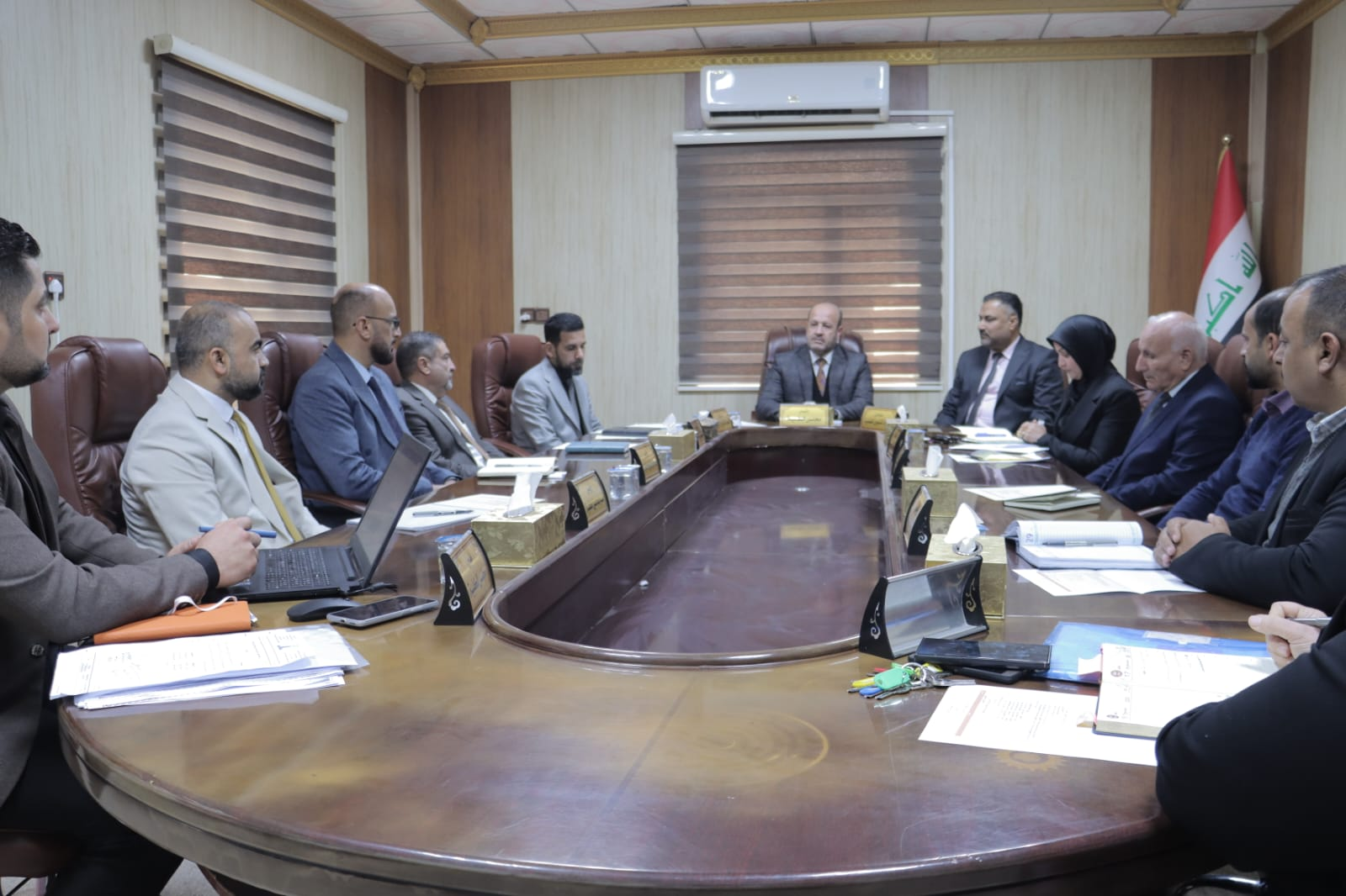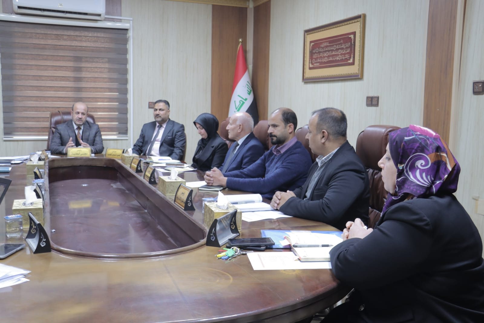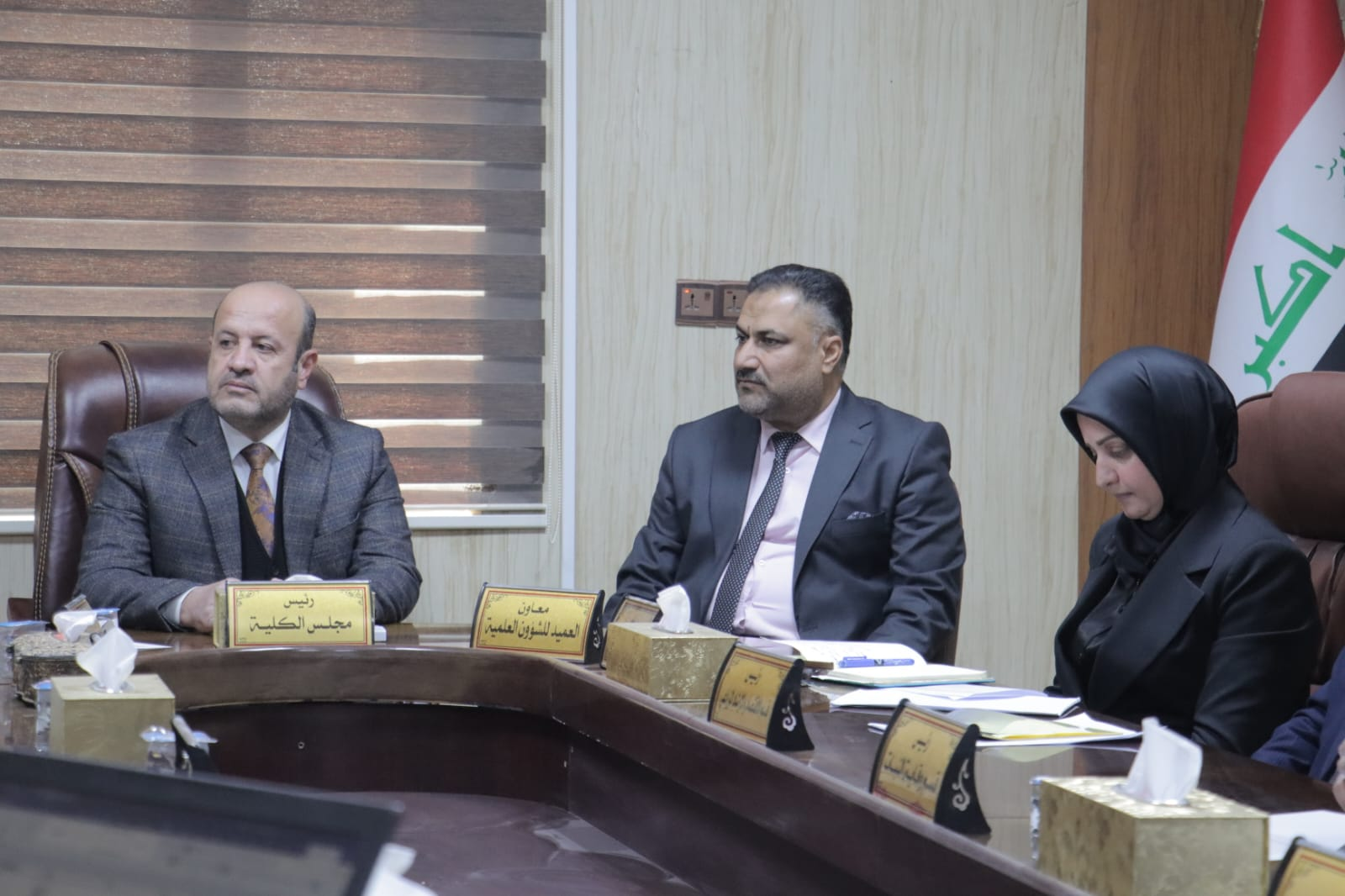 حيث ترأس اجتماع مجلس الكلية وناقش عدداً من الفقرات المدرجة على جدول الاعمال الخاصة بالمجلس وتابع سير العمل في الكلية وطرق الارتقاء به.. مؤكدا على ضرورة مواصلة العمل والسير وفق الرؤية والخطط المستقبلية التي وضعتها الجامعة وبما يخدم مخرجات الكلية واشاد بالجهود المبذولة من قبل عمادة الكلية والهيئة التدريسية في رفع المستوى العلمي والحفاظ على الرصانة العلمية للكلية والجامعة.