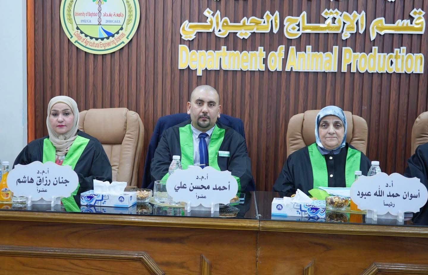 شارك التدريسي بقسم علوم الأغذية الاستاذ المساعد الدكتور أحمد محسن علي في مناقشة أطروحة دكتوراه في كلية علوم الهندسة الزراعية بجامعة بغداد بعنوان ( التحلل الحيوي لمبيد Acetamiprid ببكتريا معزولة محلياً ) للطالبة رؤى نايف عبدالله من قسم علوم الأغذية .