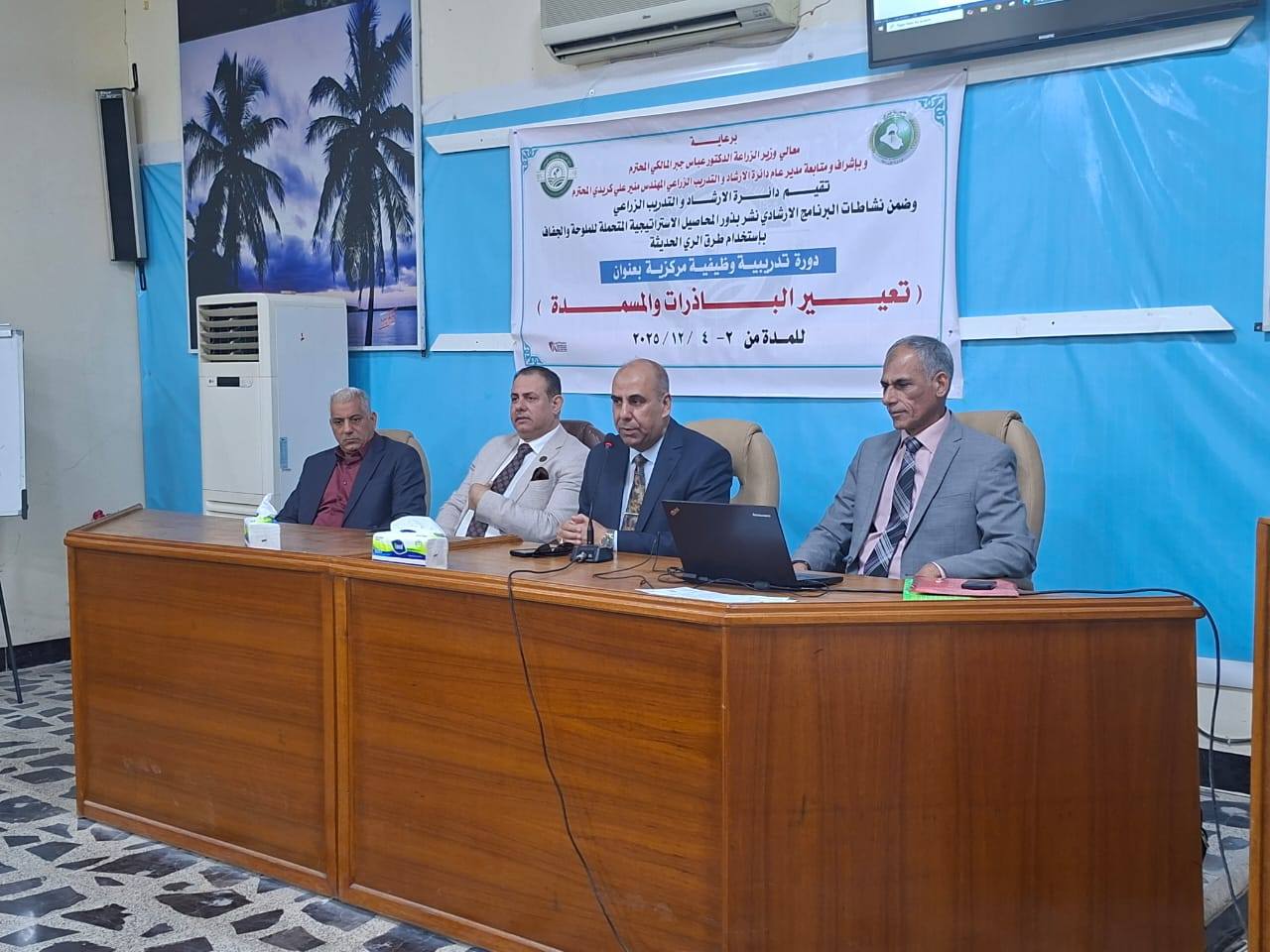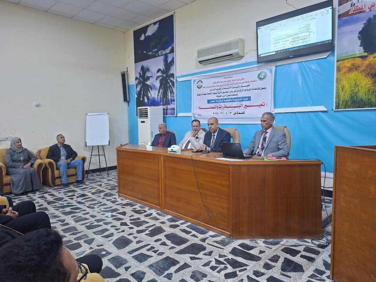 وأكد كريدي خلال الاجتماع أن تنفيذ مثل هذه الدورات التدريبية المتخصصة يُعدّ ركيزة أساسية لرفع قدرات ومهارات منتسبي الدائرة، وتطوير أدائهم الفني بما ينعكس مباشرة على جودة الخدمات المقدَّمة للمزارعين. وأشار إلى أن مخرجات هذه الدورة تُسهم بشكل فعّال في تعزيز قدرة الكوادر على مواجهة التغيّرات البيئية والتقلبات المناخية وشحّة المياه وارتفاع ملوحة التربة، وهي عوامل أثّرت سلباً في خصوبة الأراضي الزراعية في العراق. وشدّد على ضرورة توحيد الجهود وتبنّي التقانات الحديثة لتحقيق التنمية الزراعية المستدامة، ودعم المزارعين في تحسين كفاءة العمليات الحقلية والارتقاء بالإنتاج الزراعي رغم التحديات المناخية والبيئية القائمة.