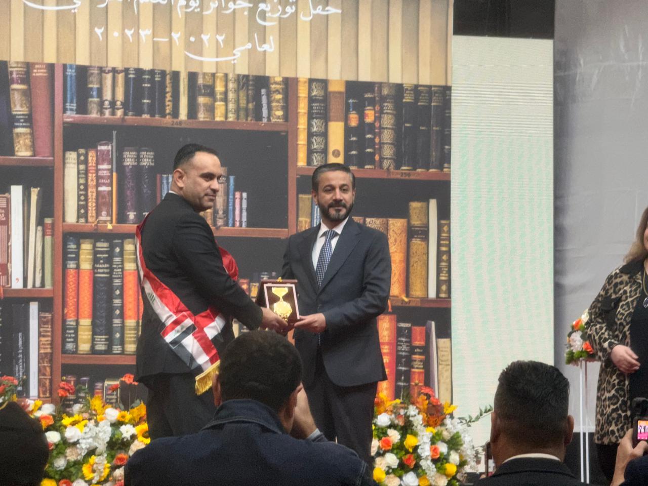 تمكنت جامعة تكريت من الحصول على ثمان جوائز في يوم العلم العراقي جاء ذلك خلال حفل التكريم الذي اقيم في جامعة بغداد اليوم الاثنين الموافق 30/12/2024 من قبل معالي وزير التعليم العالي والبحث العلمي الدكتور نعيم العبودي وبحضور رئيس جامعة تكريت الاستاذ الدكتور وعد محمود رؤوف حيث حصلت الجامعة على المراكز الاولى في جائزة افضل براءة اختراع لعام 2023 للأستاذ المساعد الدكتور نمير خيرالله محمد كلية الزراعة وكذلك المركز الاول في جائزة افضل بحث علمي لعام 2023 للإستاذ الدكتور فراس احمد درج كلية الزراعة و المركز الاول في جائزة افضل بحث علمي في العلوم الطبية لعام 2023 للإستاذ الدكتور مهند الجنابي