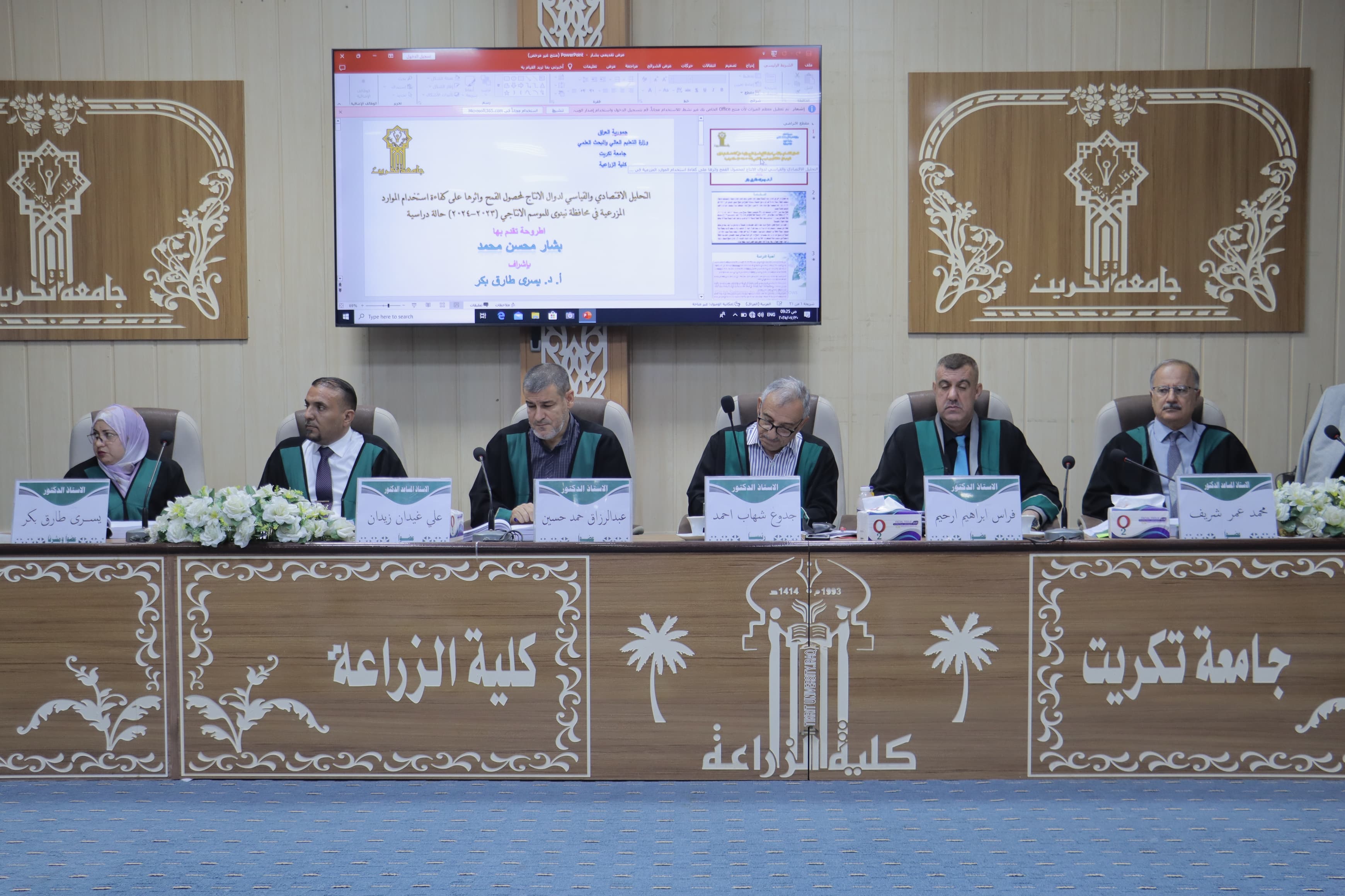 نوقشت في قسم الاقتصاد والارشاد الزراعي بكلية الزراعة - جامعة تكريت أطروحة دكتوراه للباحث بشار محسن محمد بعنوان (التحليل الاقتصادي والقياسي لدوال الإنتاج لمحصول القمح واثرها على كفاءة استخدام الموارد المزرعية في محافظة نينوى للموسم الإنتاجي 2023-2024 حالة دراسية)