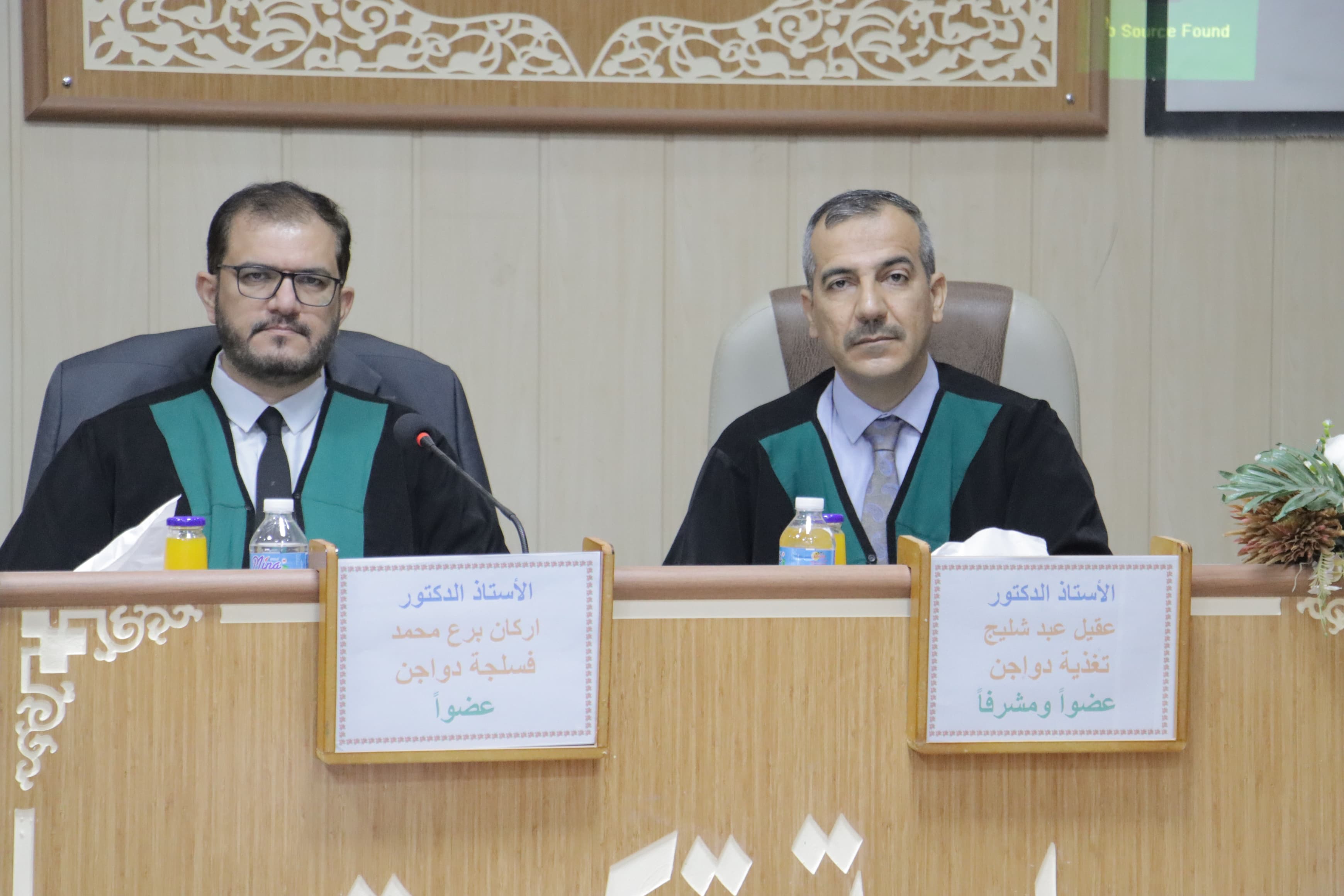 بحضور عميد كلية الزراعة الاستاذ المساعد الدكتور سامي خضر سعيد.. نوقشت في قسم الانتاج الحيواني أطروحة دكتوراه للباحث معاذ وعد عكله بعنوان (تأثير بكتيريا Lactobacillus fermentum وLactobacillus plantarum في الأداء الإنتاجي والفسلجي لفروج اللحم المغذى على عليقة ملوثة بسم الافلاتوكسينB1)